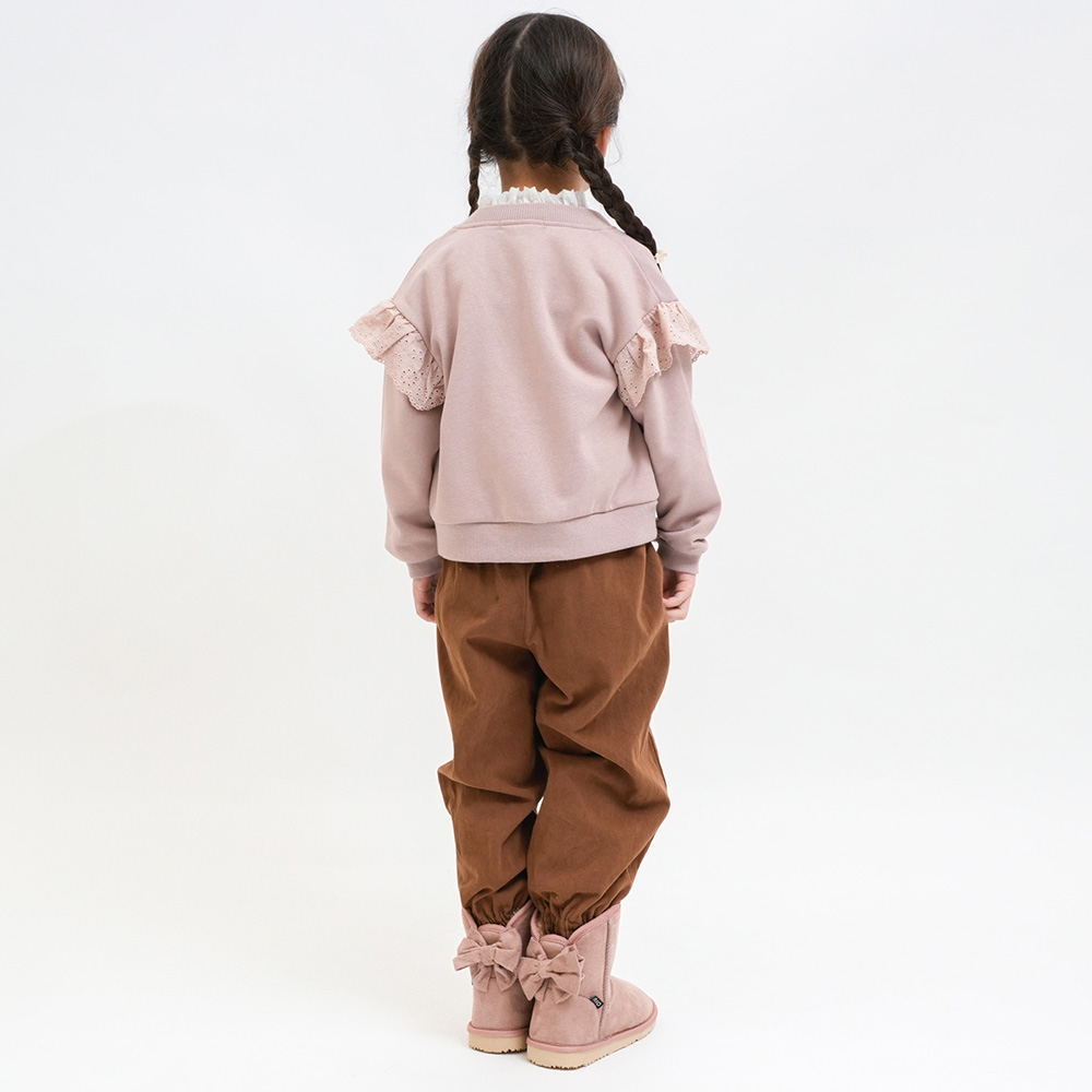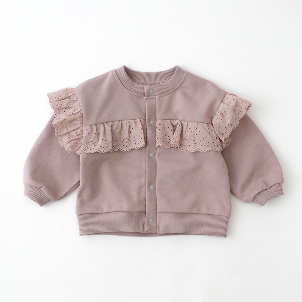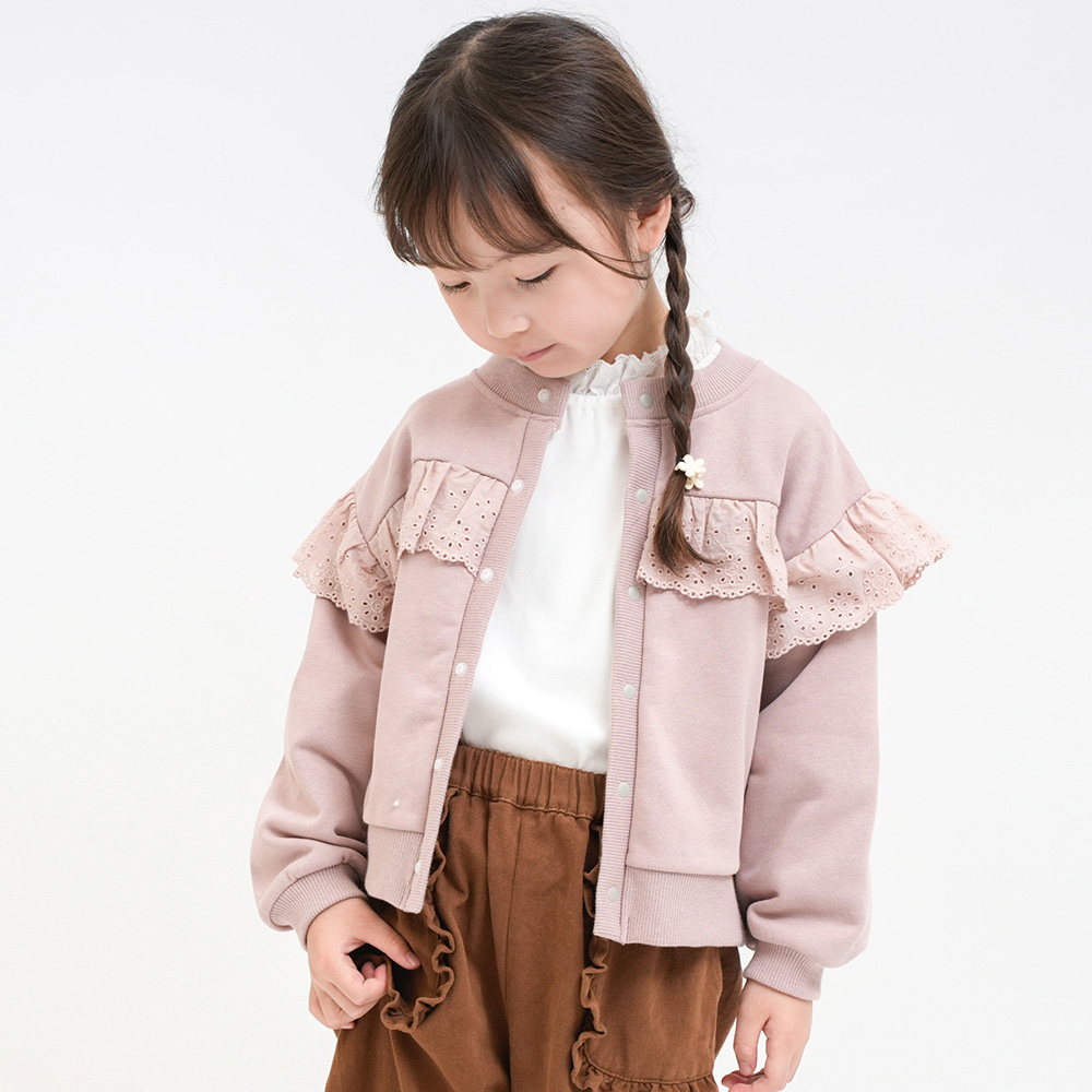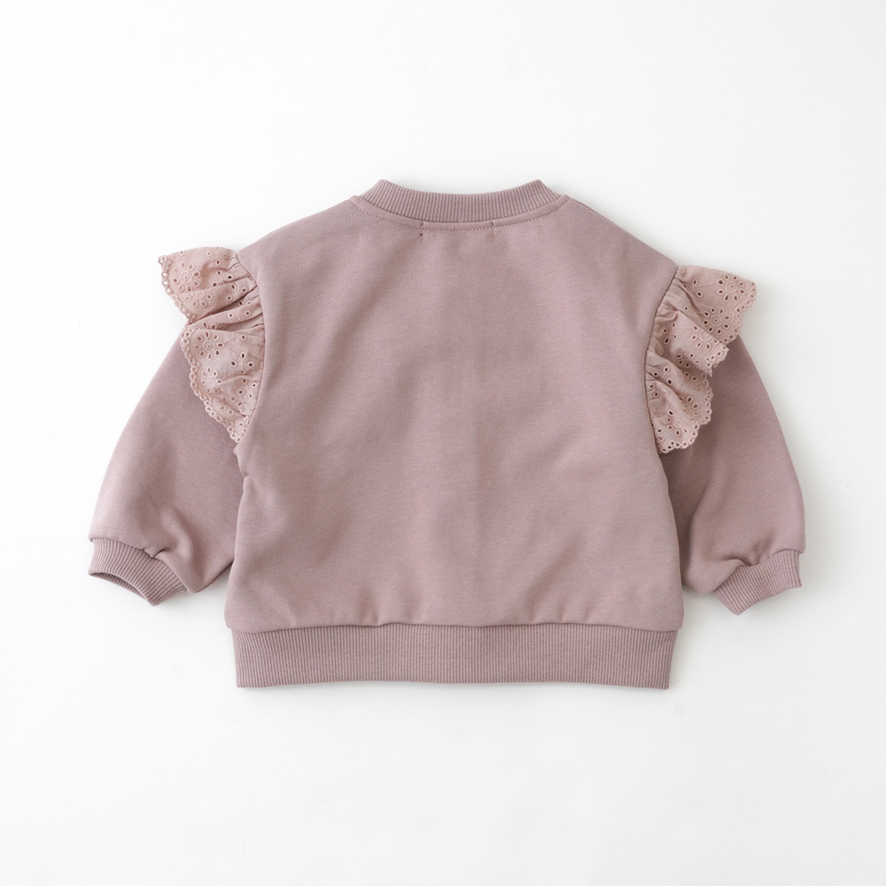 軽くて柔らかい裏毛素材に同色レースをあしらった上品なデザイン。