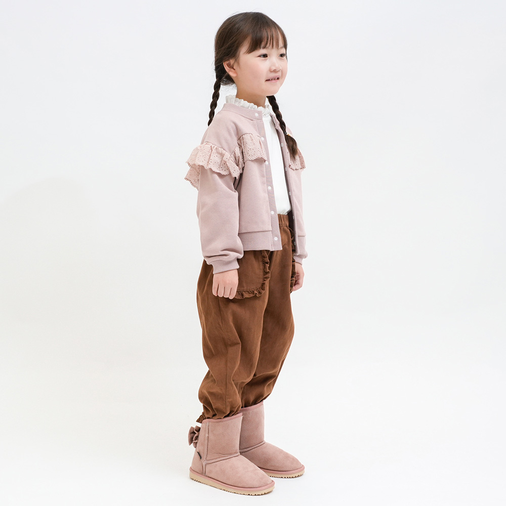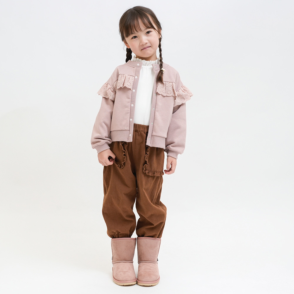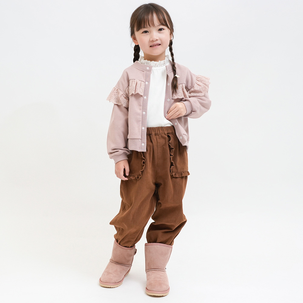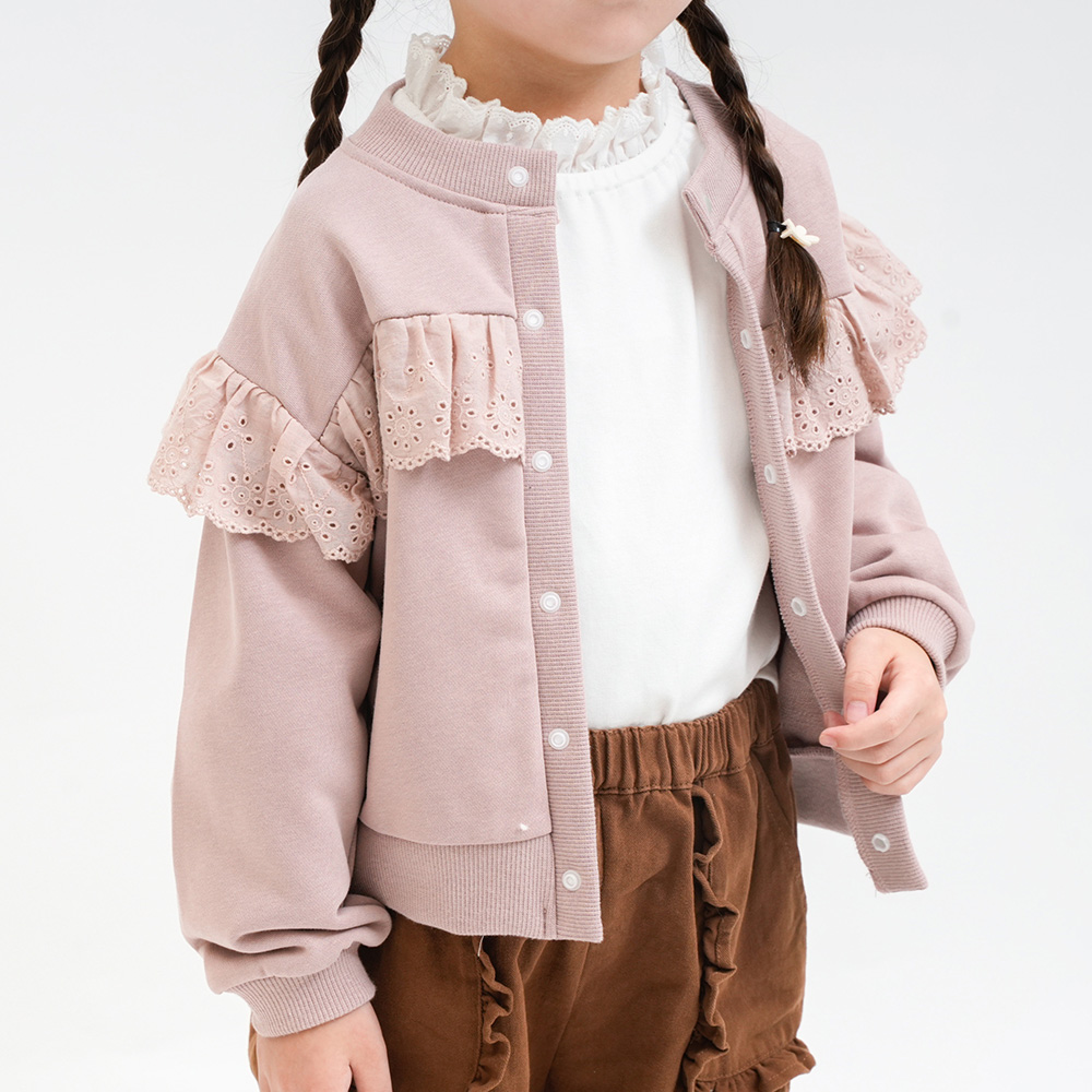 軽くて柔らかい裏毛素材に同色レースをあしらった上品なデザイン。
