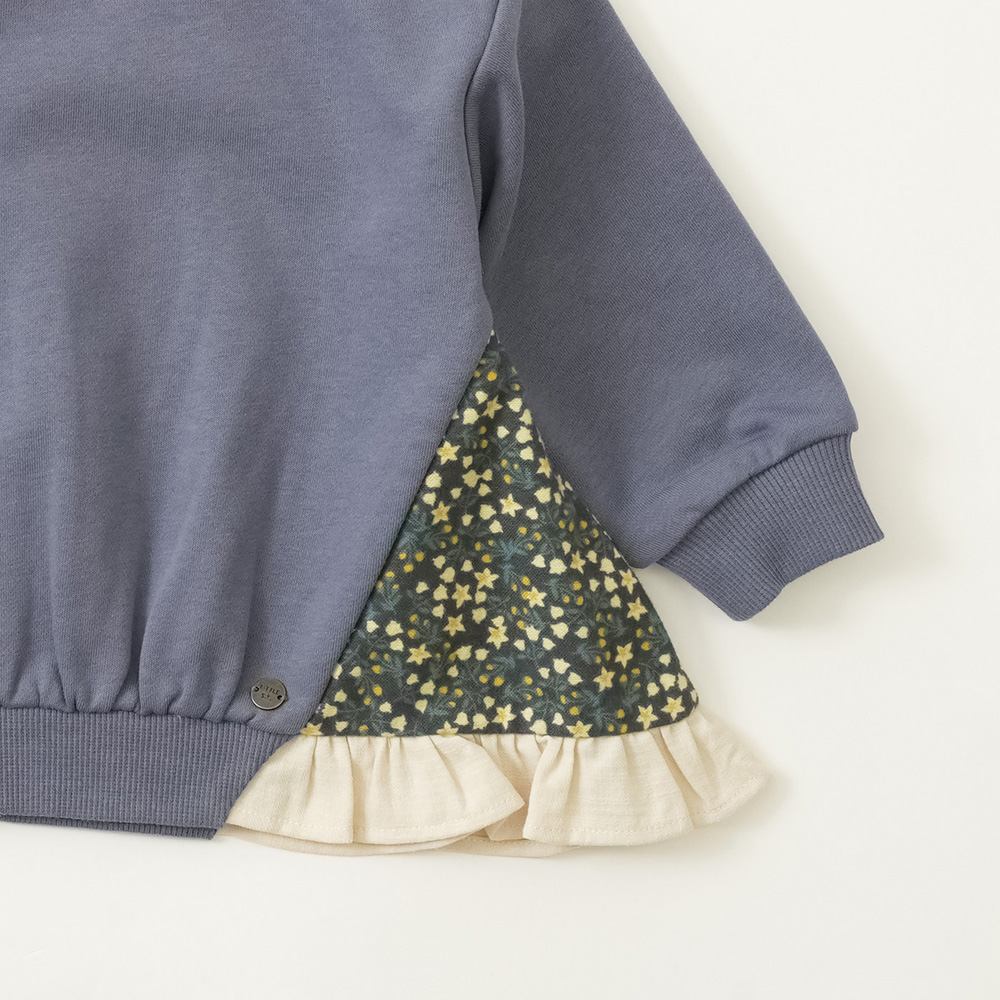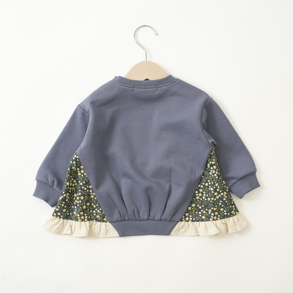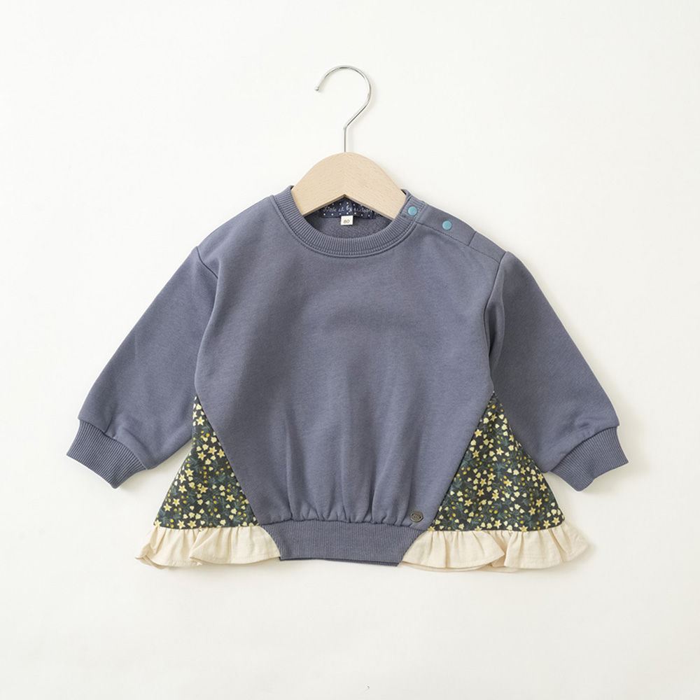 リバティ調フラワーファブリックを脇裾にドッキングしたきれいなAラインシルエット♪