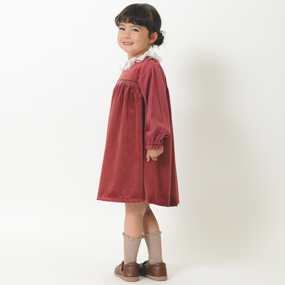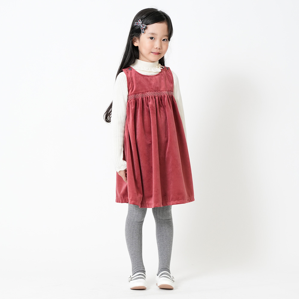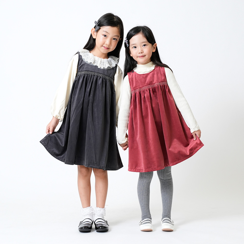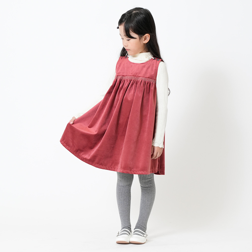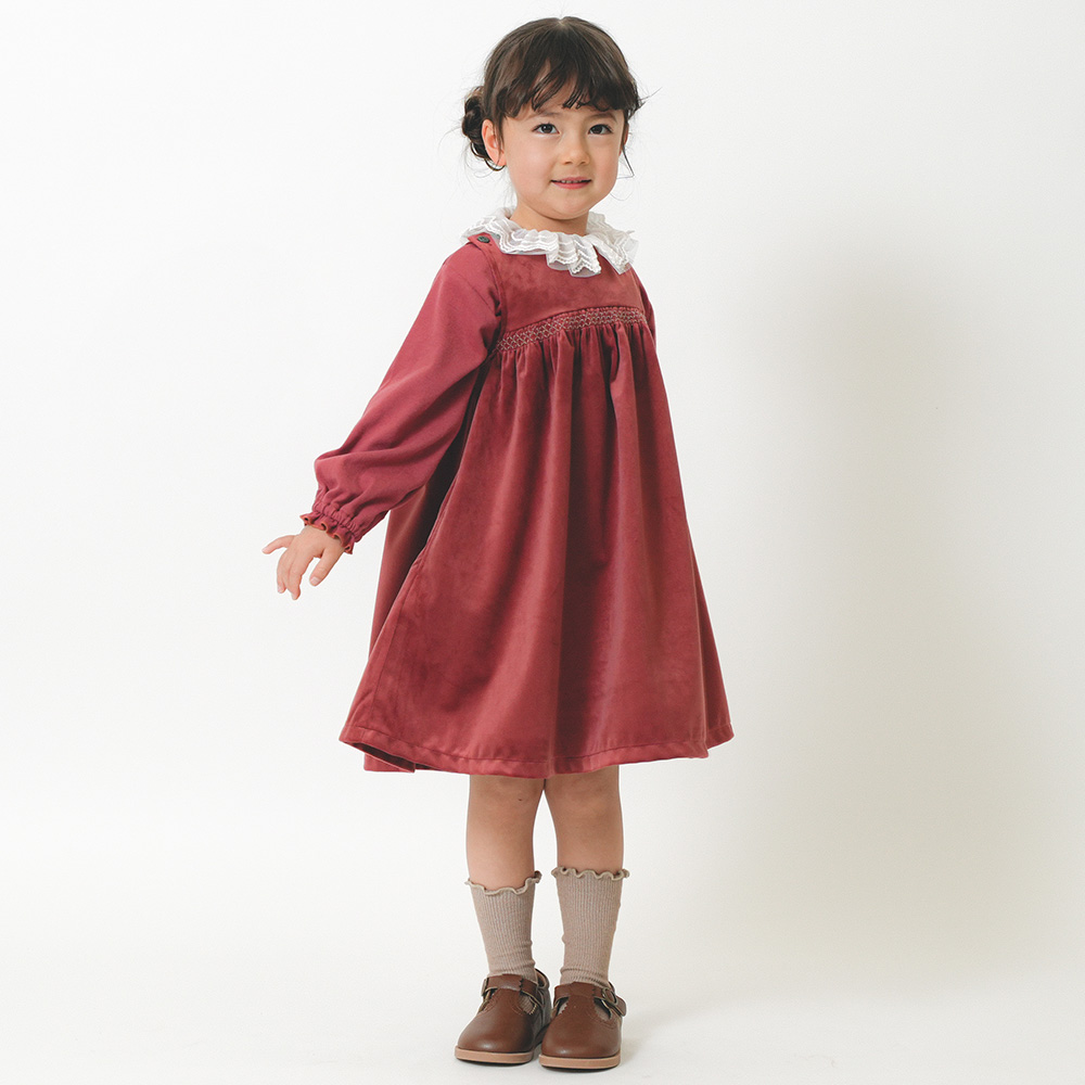 ギャザーたっぷりシルエットでスモッキング刺繍が特徴のベロアジャンスカ。