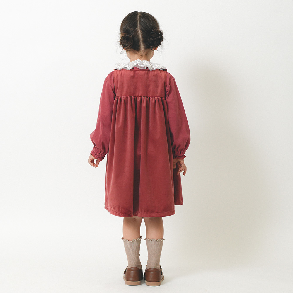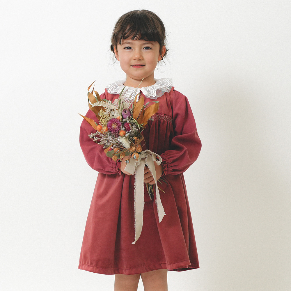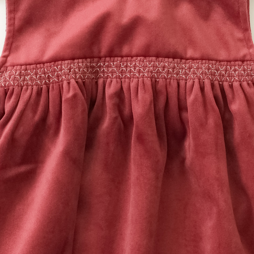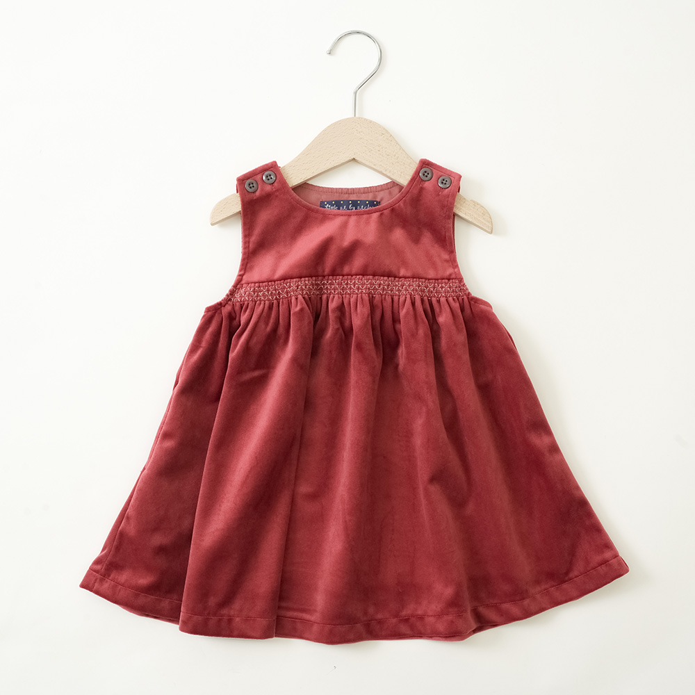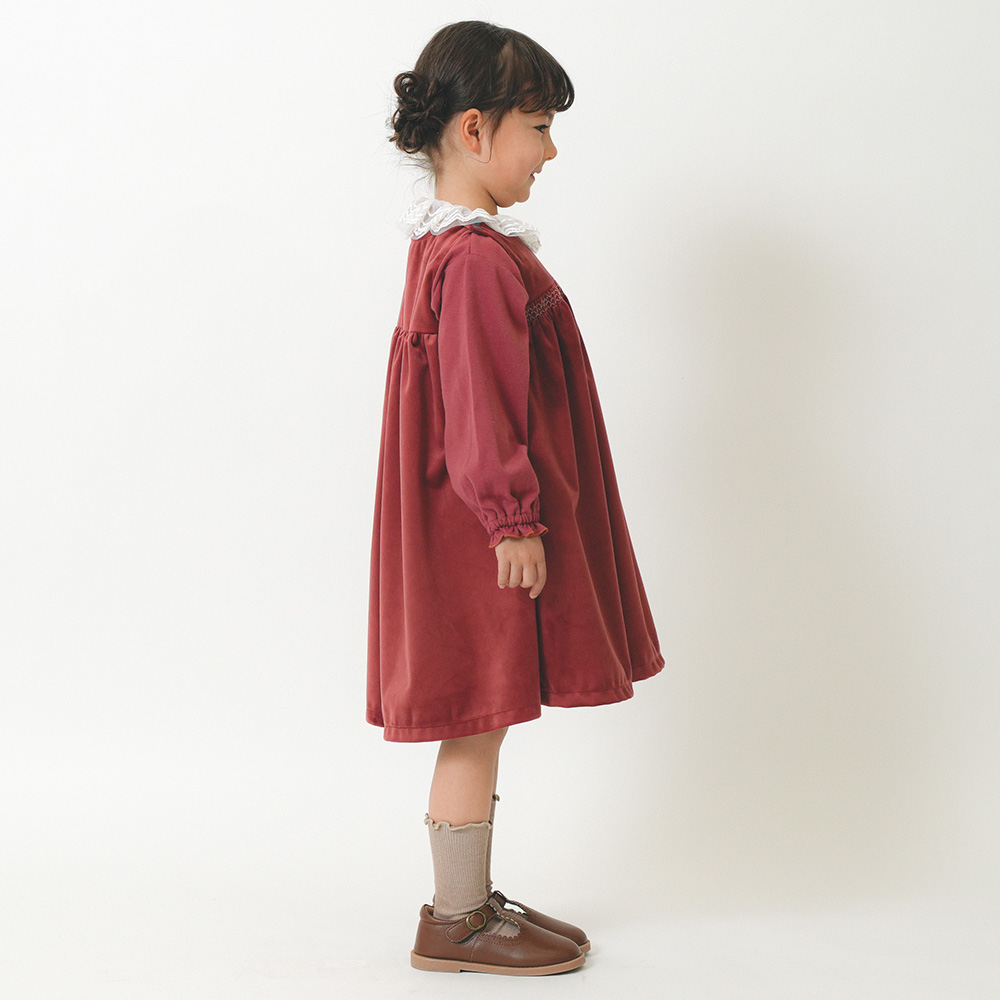 ギャザーたっぷりシルエットでスモッキング刺繍が特徴のベロアジャンスカ。