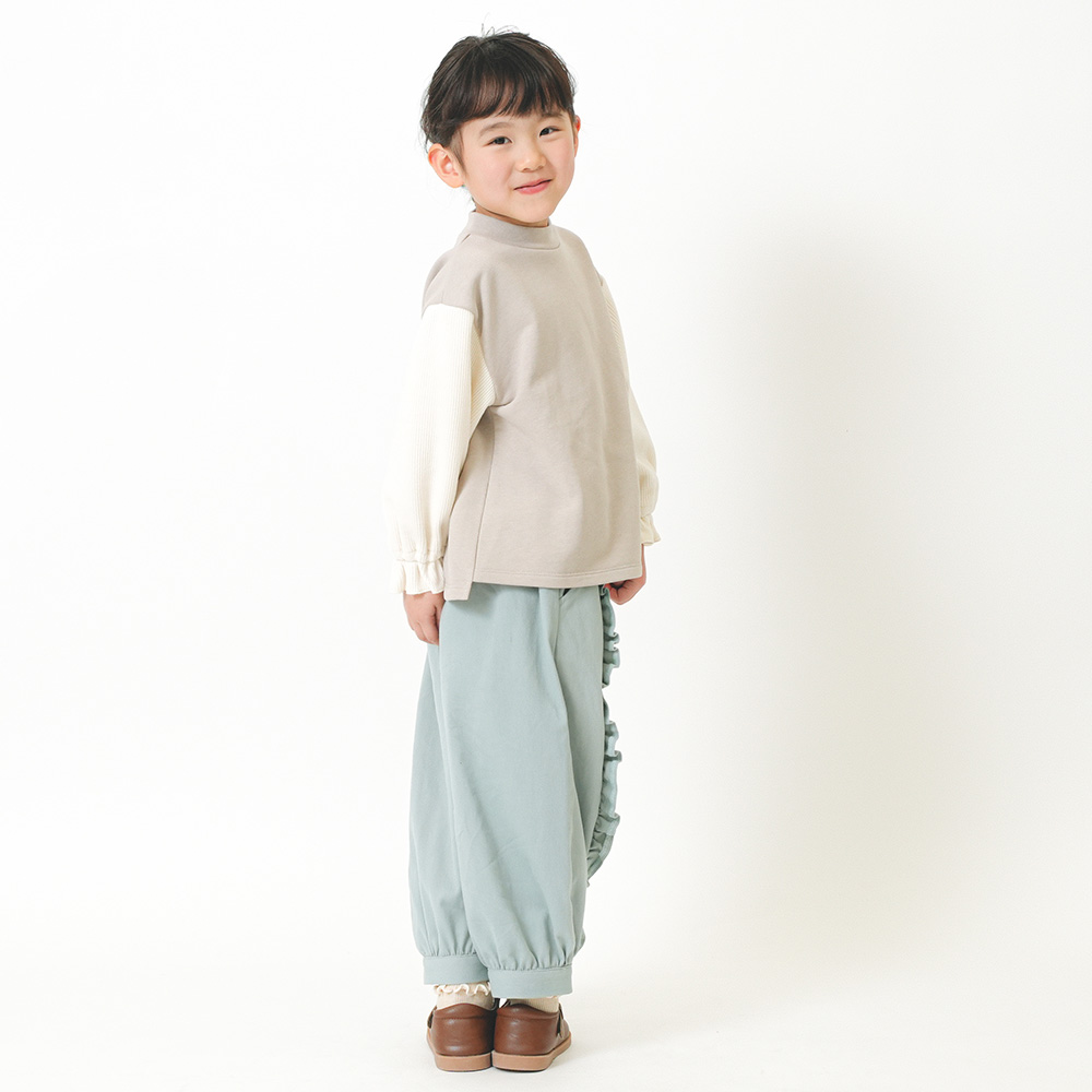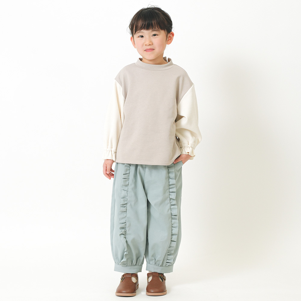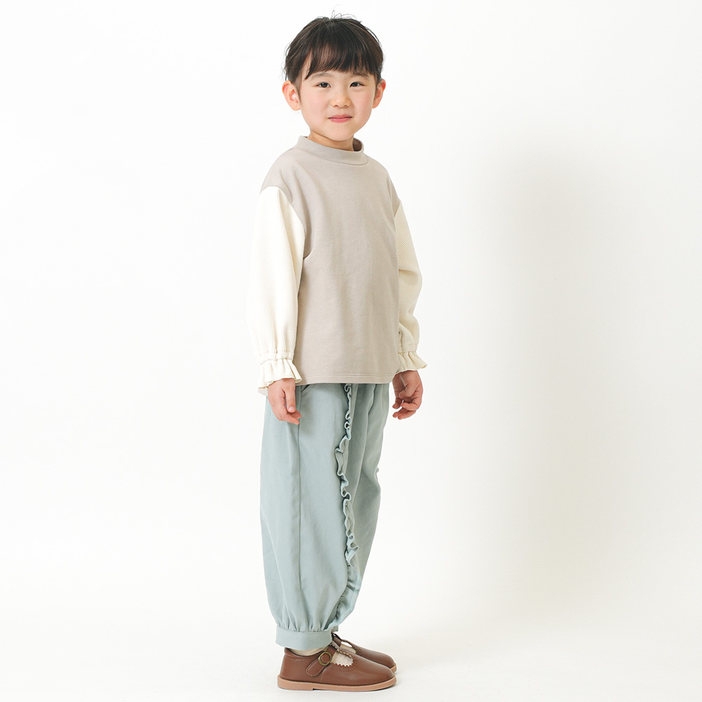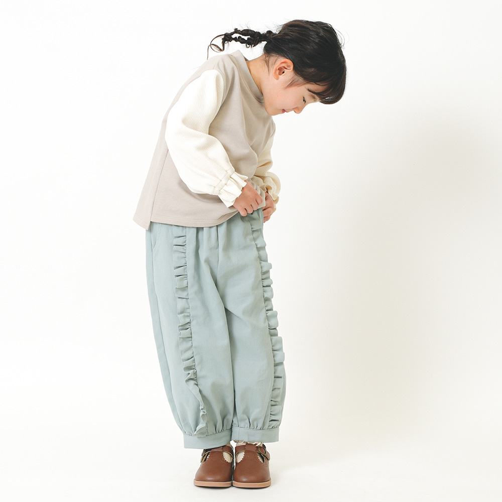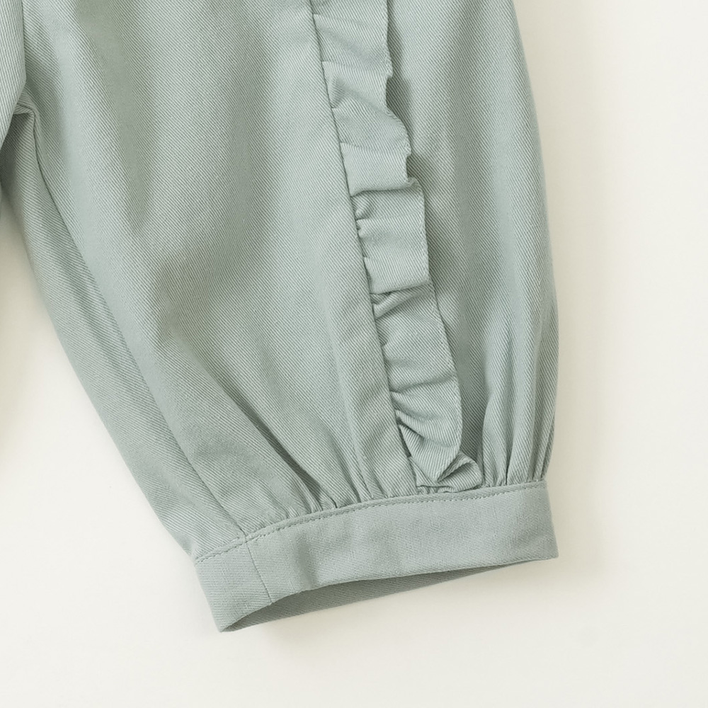 ソフト感を感じる微起毛ツイルを素材に使用。前身のディテールはフリルがポイント♪