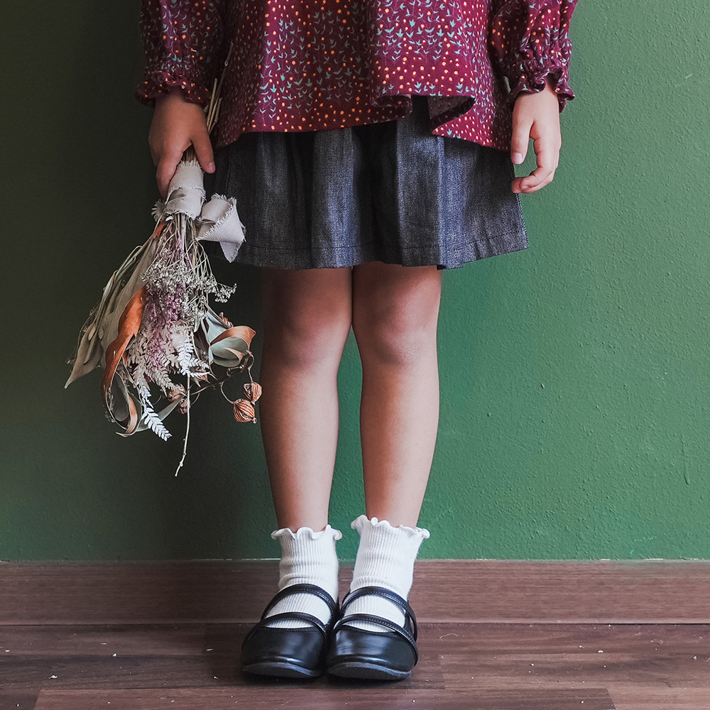 レンガ,ブラウン,ブルー本体:綿100%サイズ スカート丈 ウエストゴム上がり 80cm 24.5cm 20cm 90cm 25.5cm 21cm 100cm 27cm 22cm 110cm 28.5cm 23cm 120cm 30cm 24cm 130cm 31.5cm 25cm 140cm 33cm 26cm