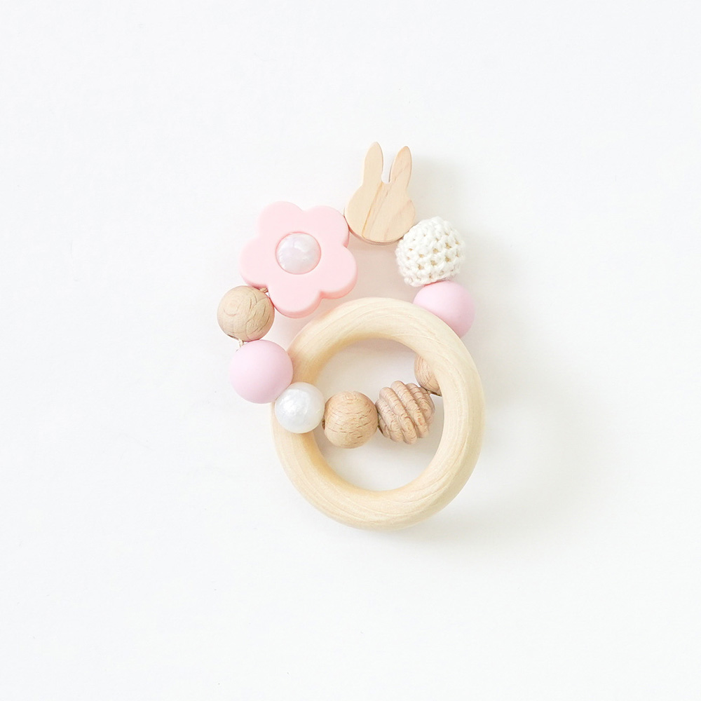赤ちゃんがにぎる・つかむ・かむことで手先や知能の発達を促すおもちゃです。