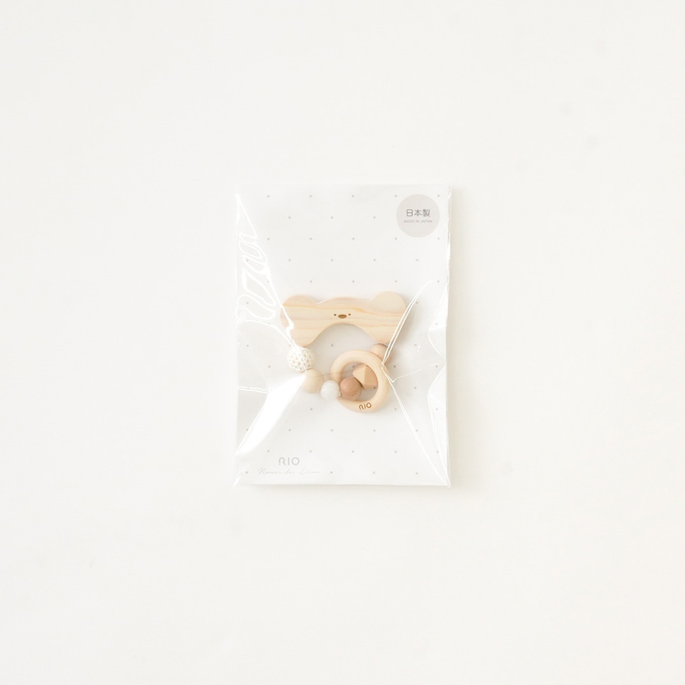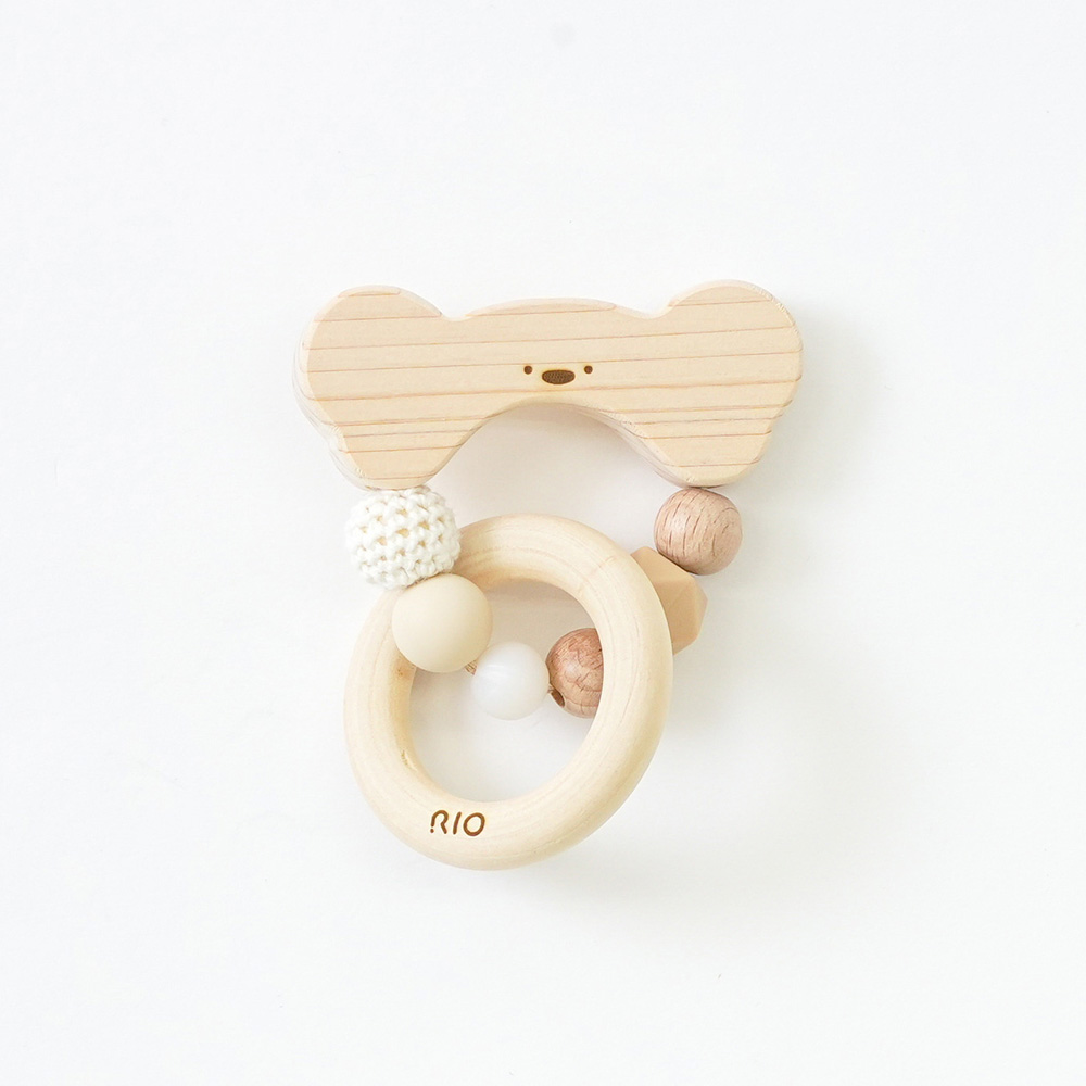 かわいらしいうさぎとくまモチーフの歯固めTOY。赤ちゃんがにぎる・つかむ・かむことで手先や知能の発達を促すおもちゃです。