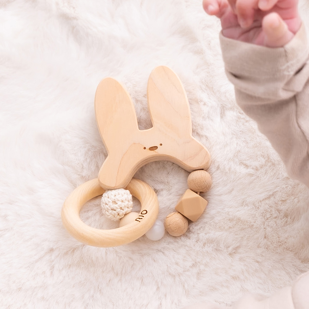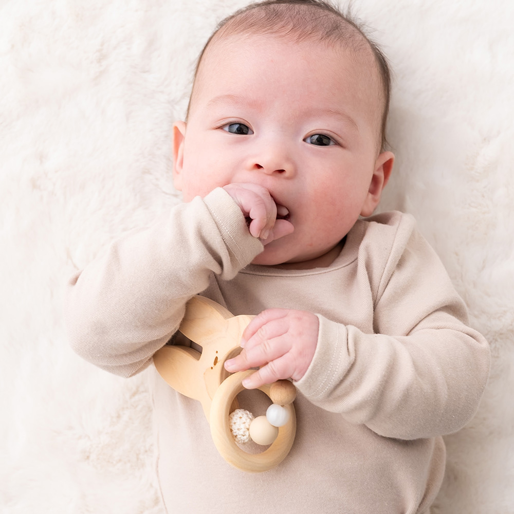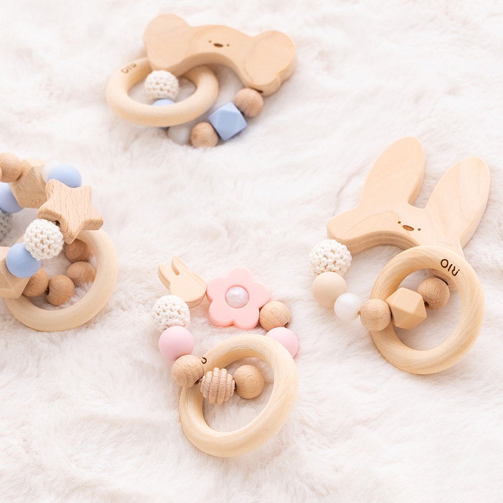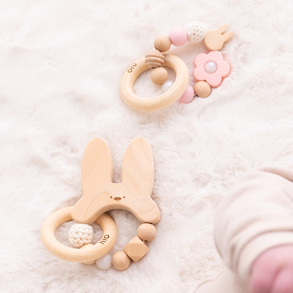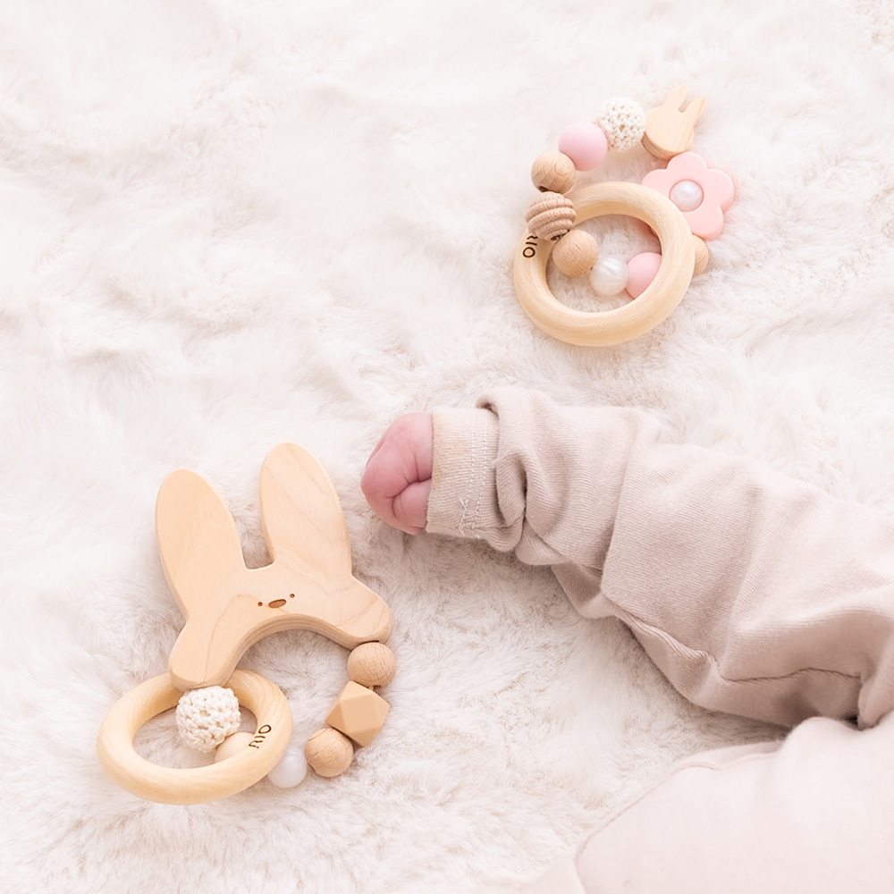 かわいらしいうさぎとくまモチーフの歯固めTOY。