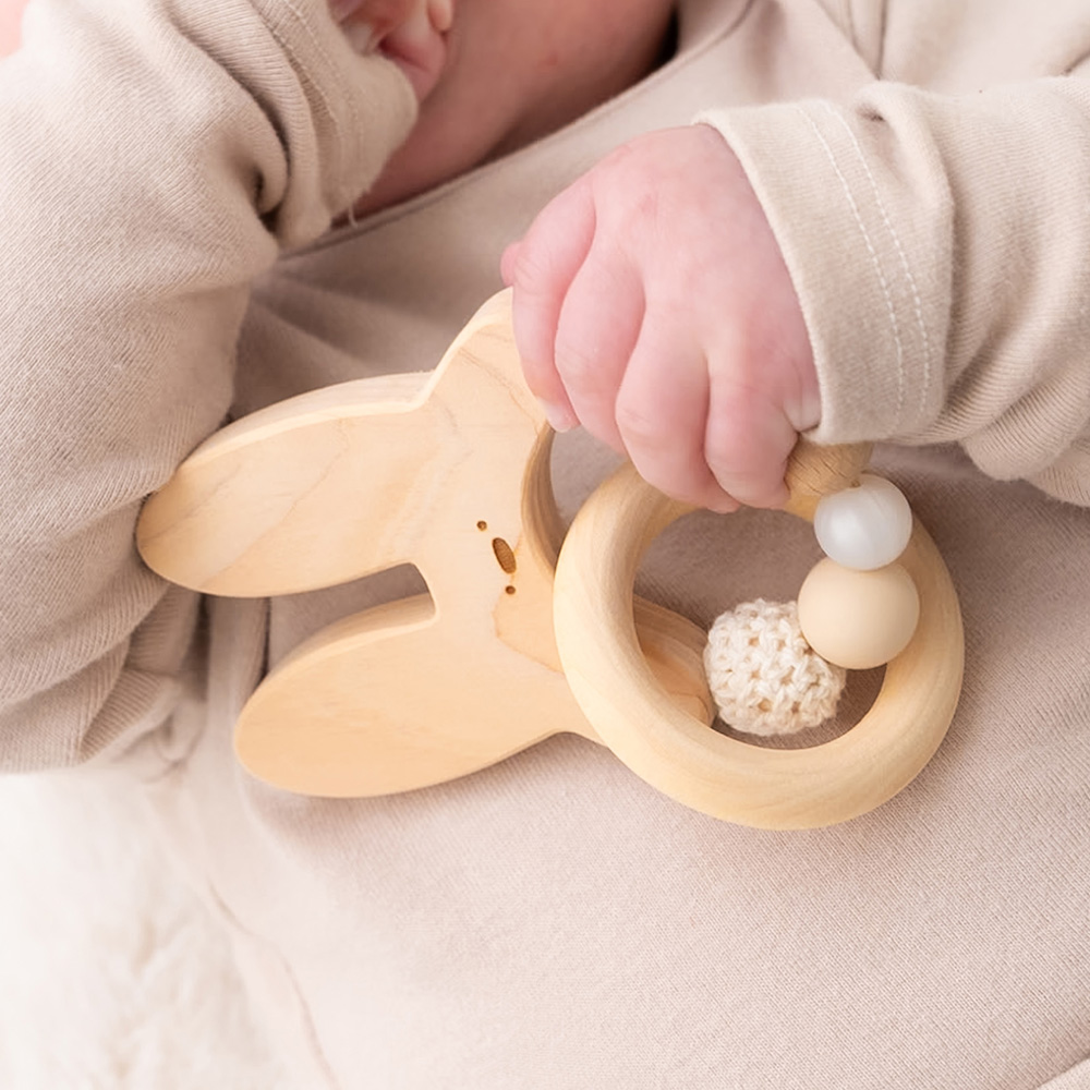 かわいらしいうさぎとくまモチーフの歯固めTOY。