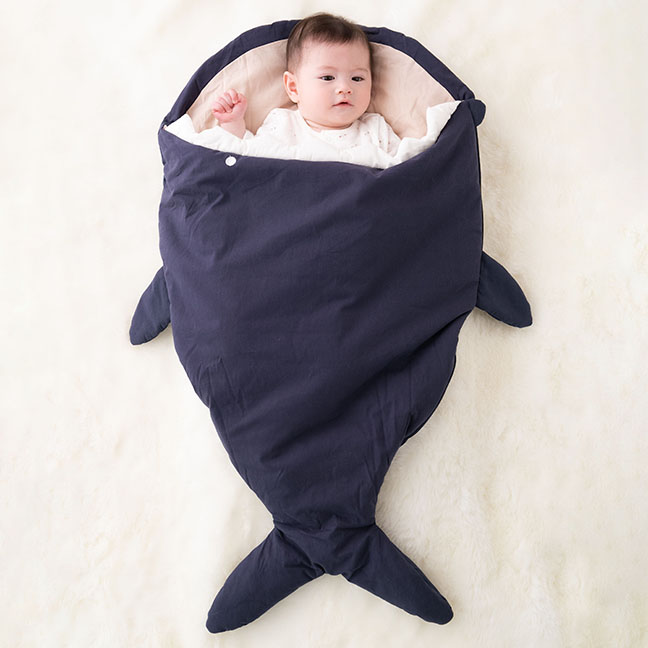 大きなお口から赤ちゃんがすっぽり!まるでサメに食べられちゃったような姿に思わず写真を撮りたくなるアイテムです。