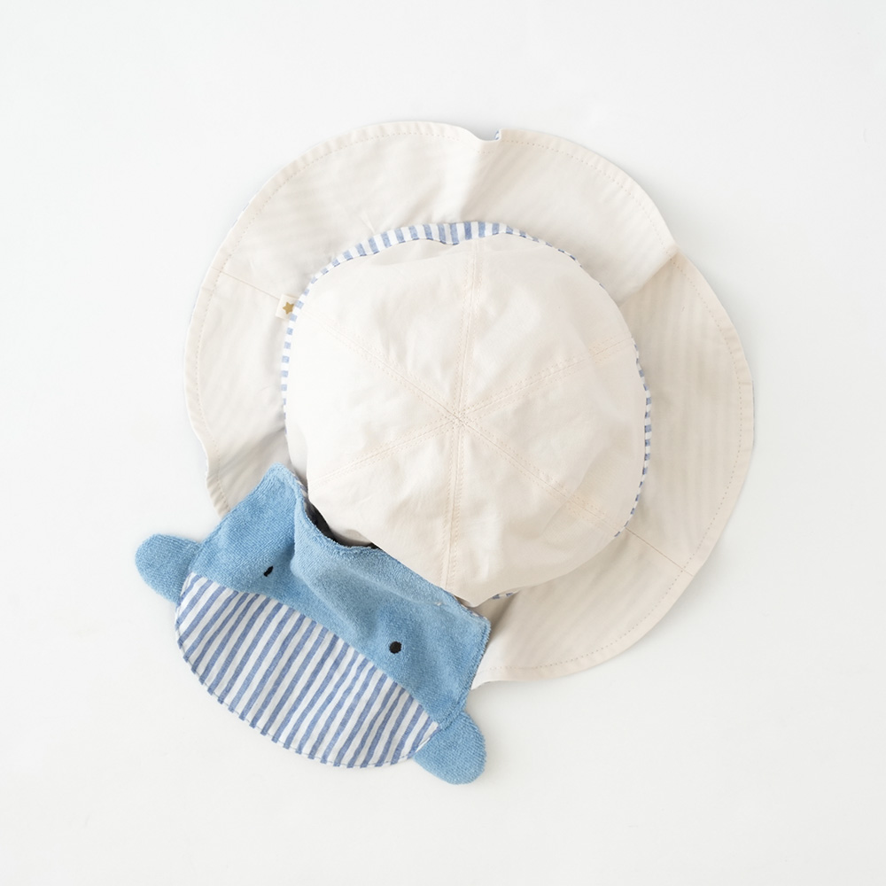 可愛いうみのいきものの、ひよけがついたハットは夏のお出かけにぴったり。ひよけは取り外し出来ます。
