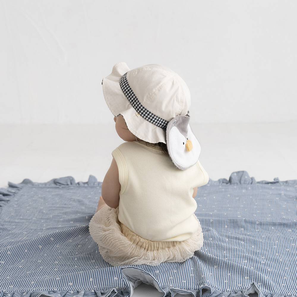 可愛いうみのいきものの、ひよけがついたハットは夏のお出かけにぴったり。ひよけは取り外し出来ます。