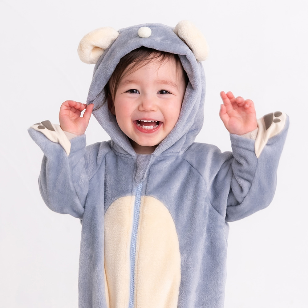 手とつま先は2way仕様でカバーが出来るので、おくるみ代わりにねんねの頃から長くお使いいただけます。