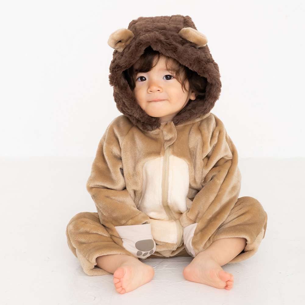 まるでぬいぐるみなかわいらしいカバーオール。