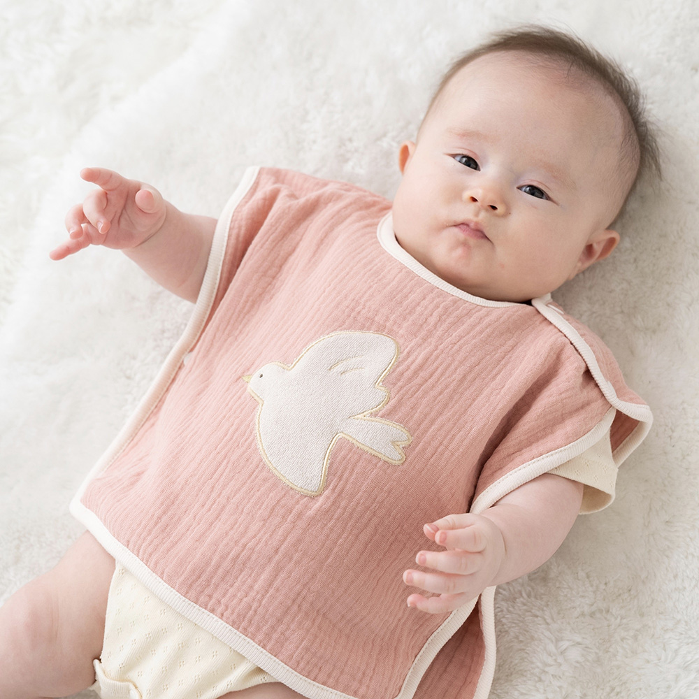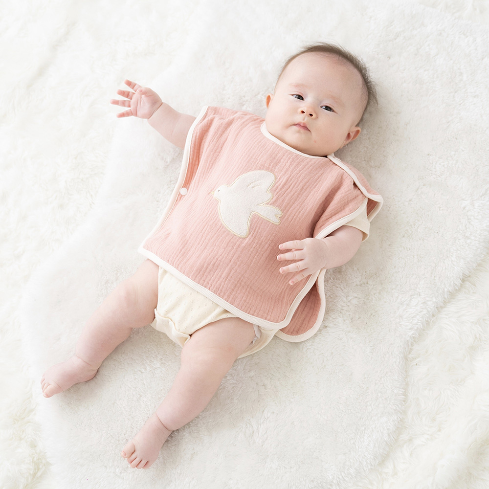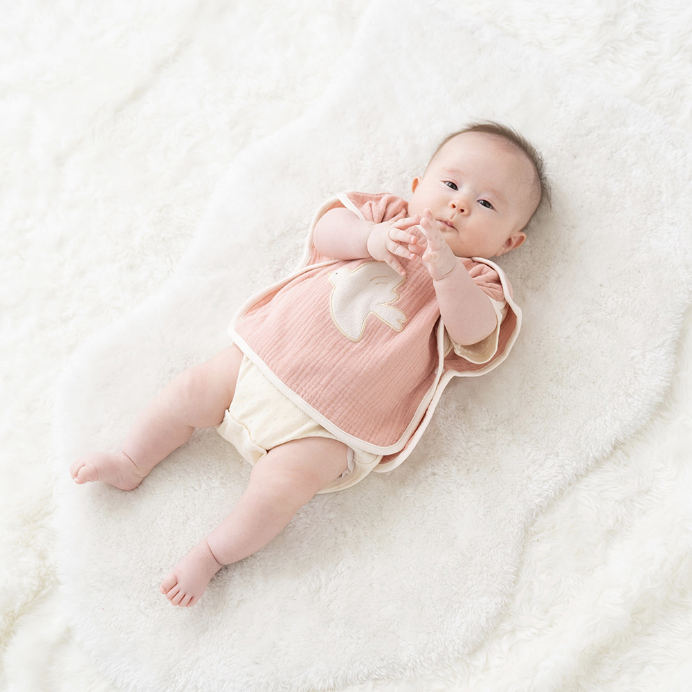 肩と両脇のスナップで前後が分かれるので、ベビーにも着せやすい♪