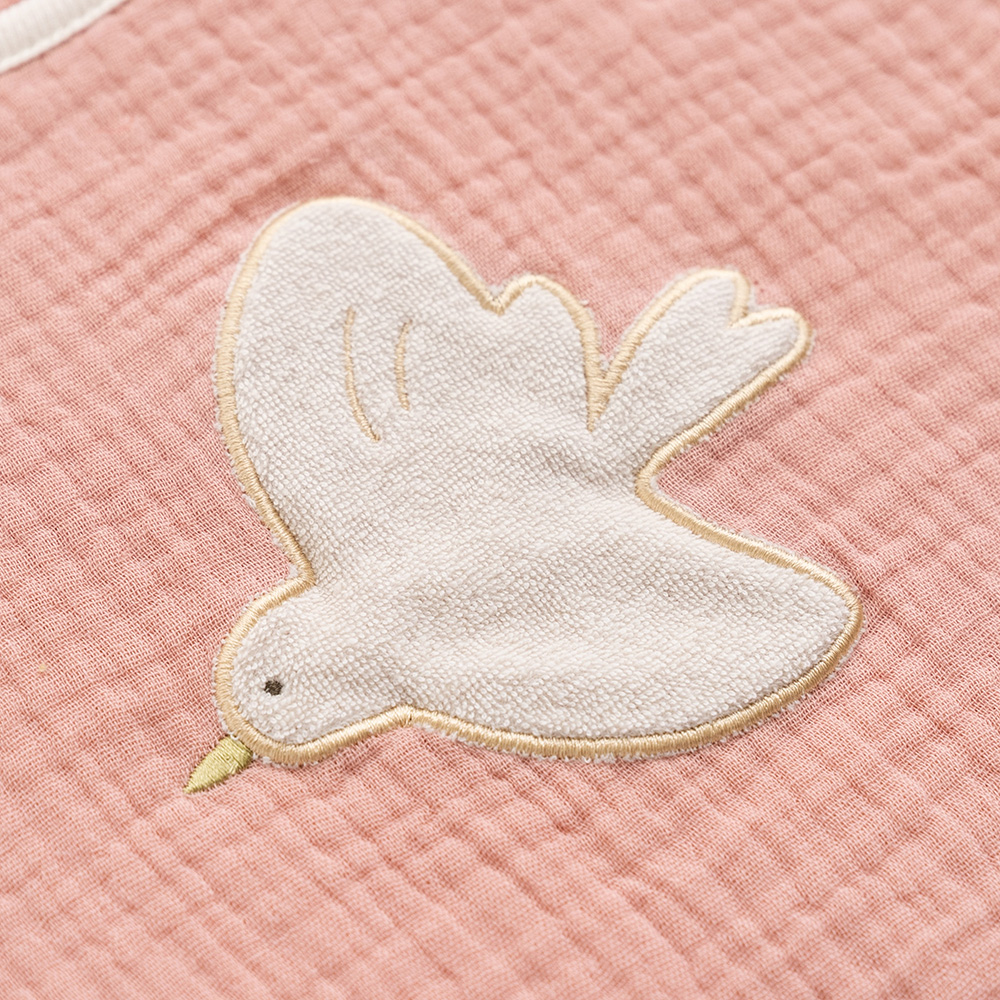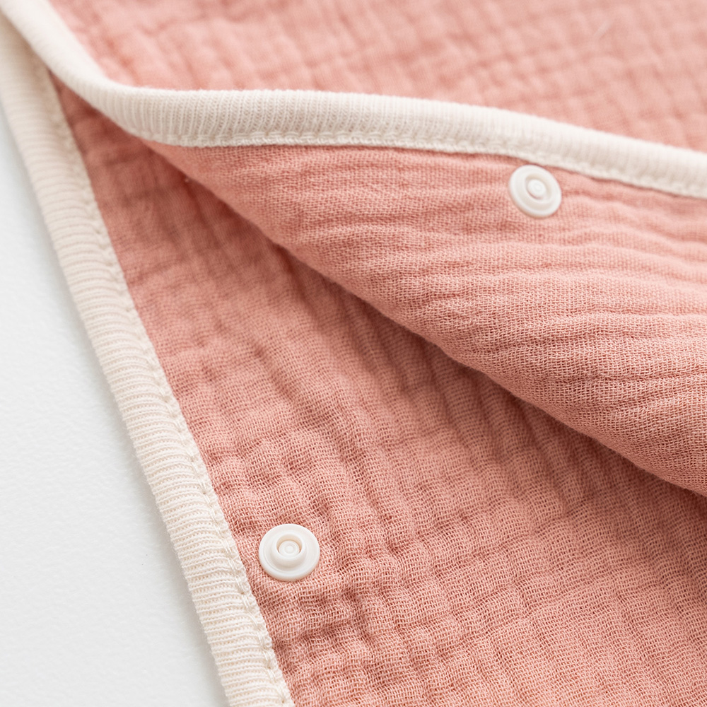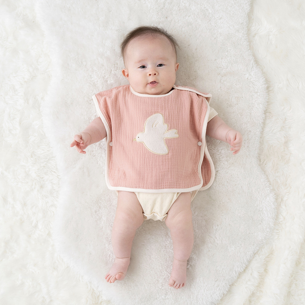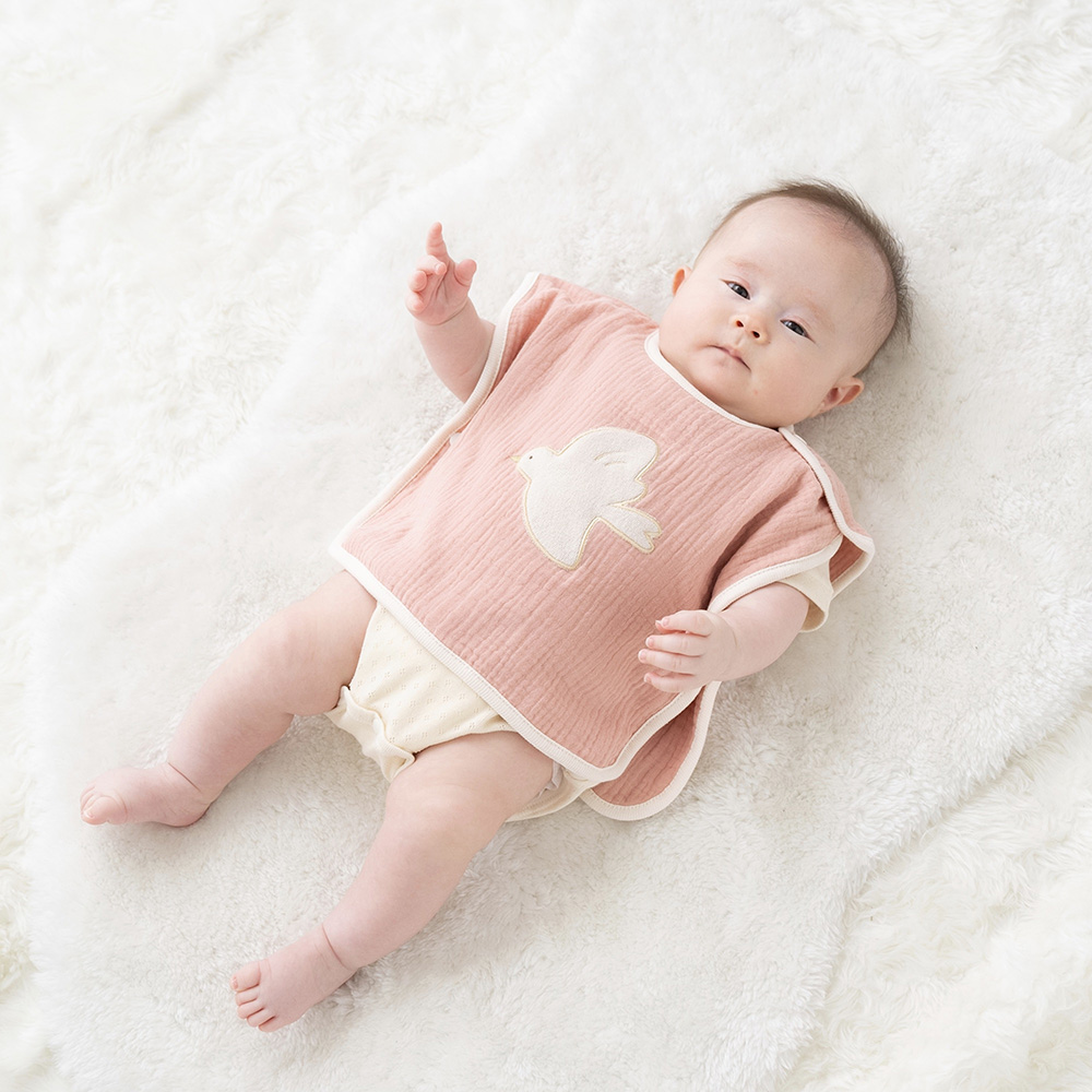肩と両脇のスナップで前後が分かれるので、ベビーにも着せやすい♪