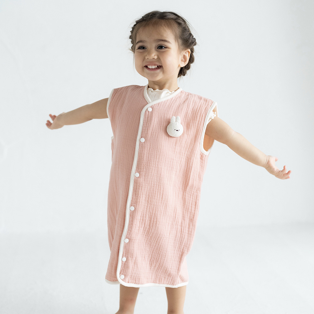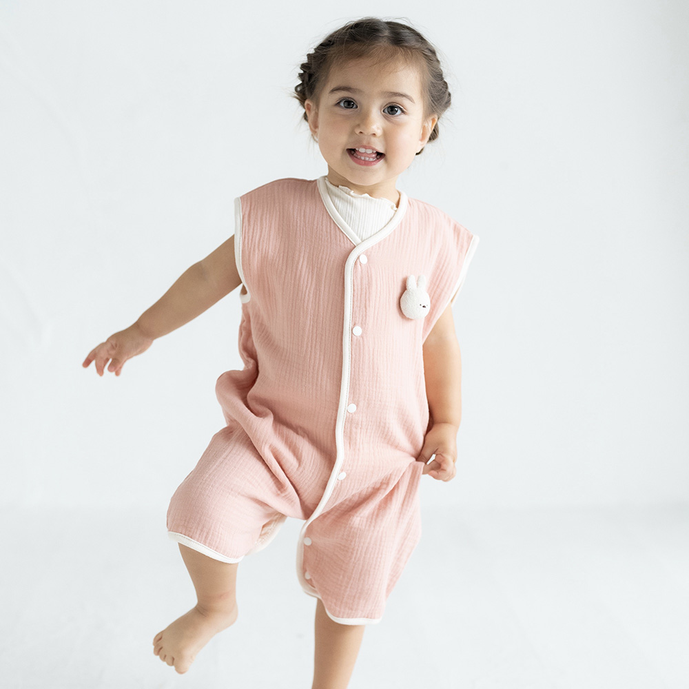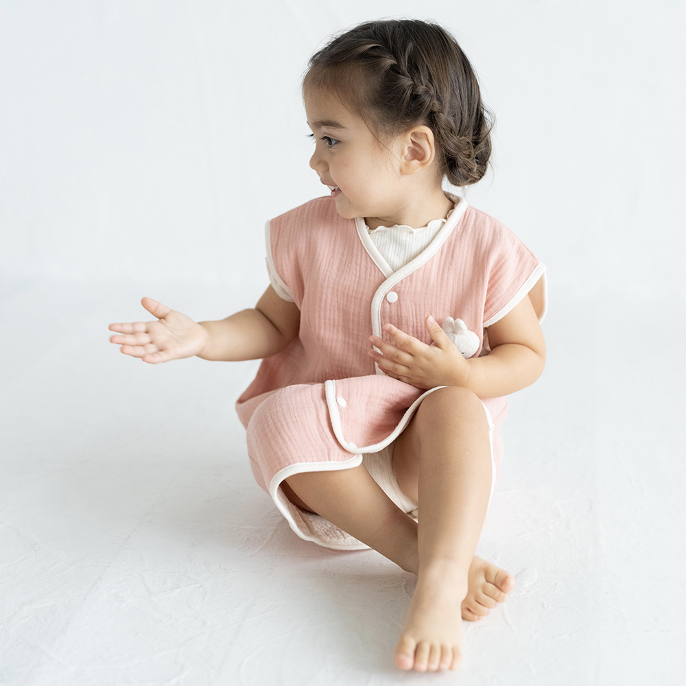 S・Mサイズは股下をズボン型に留められるので寝相が元気なお子さまにも安心です。