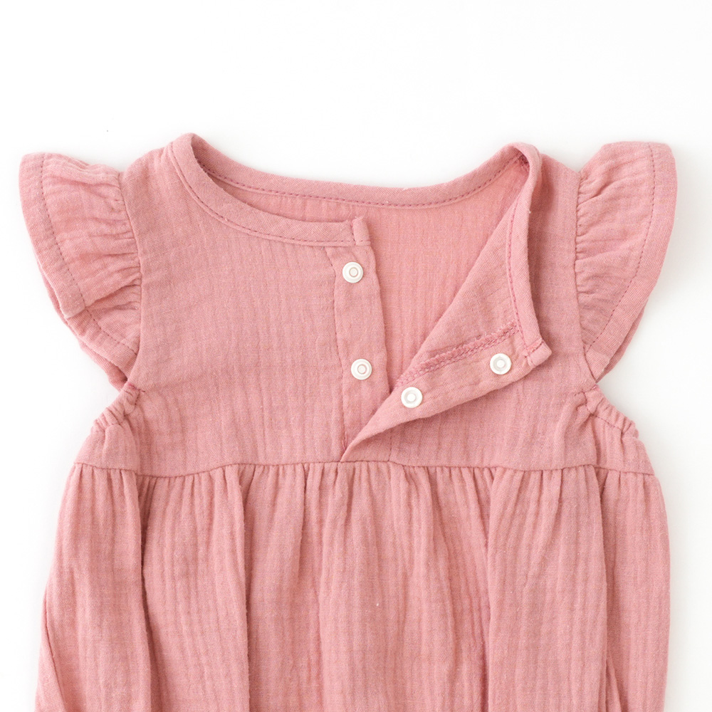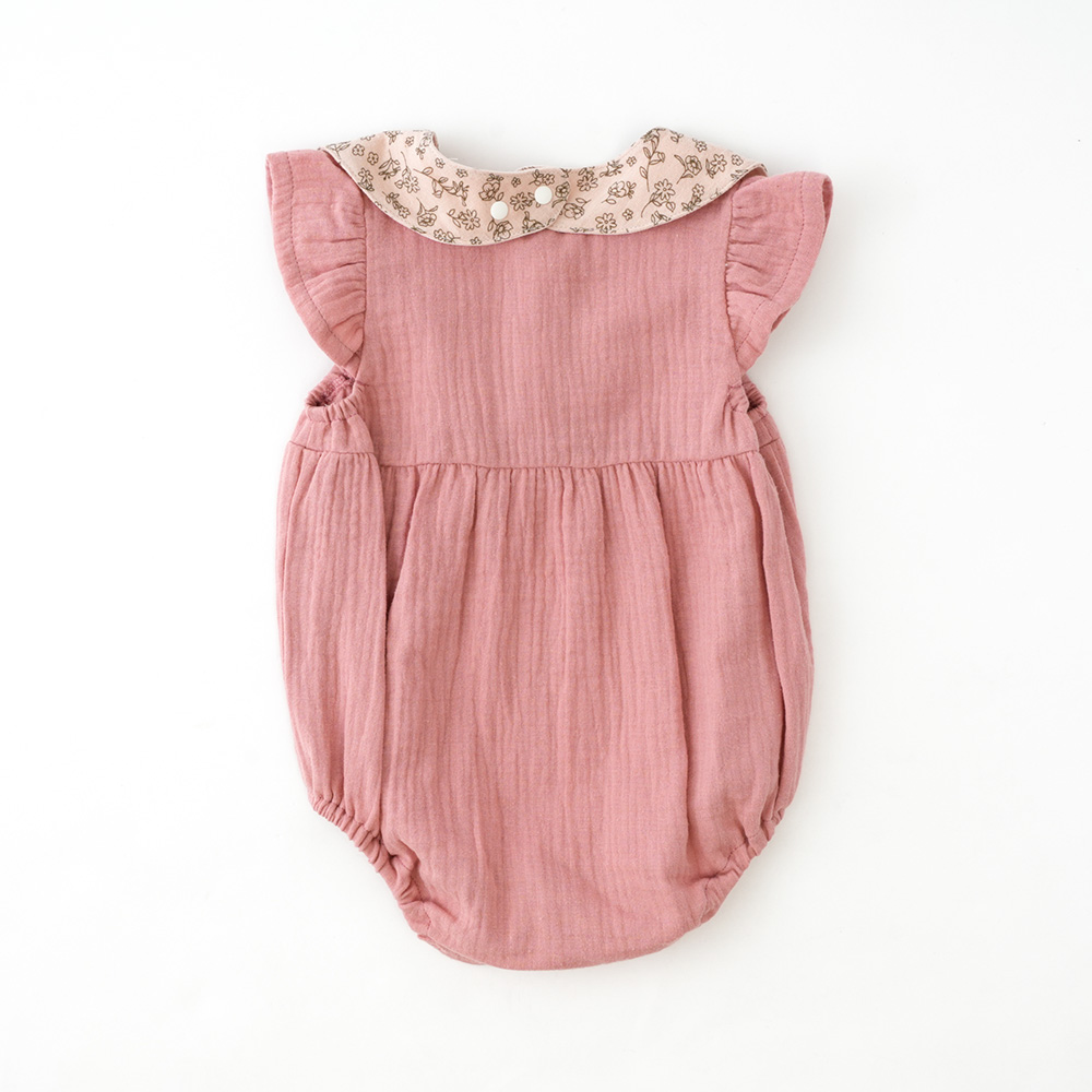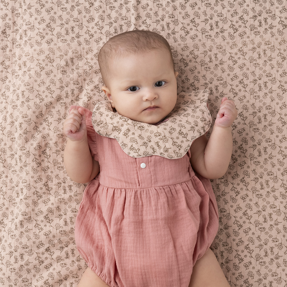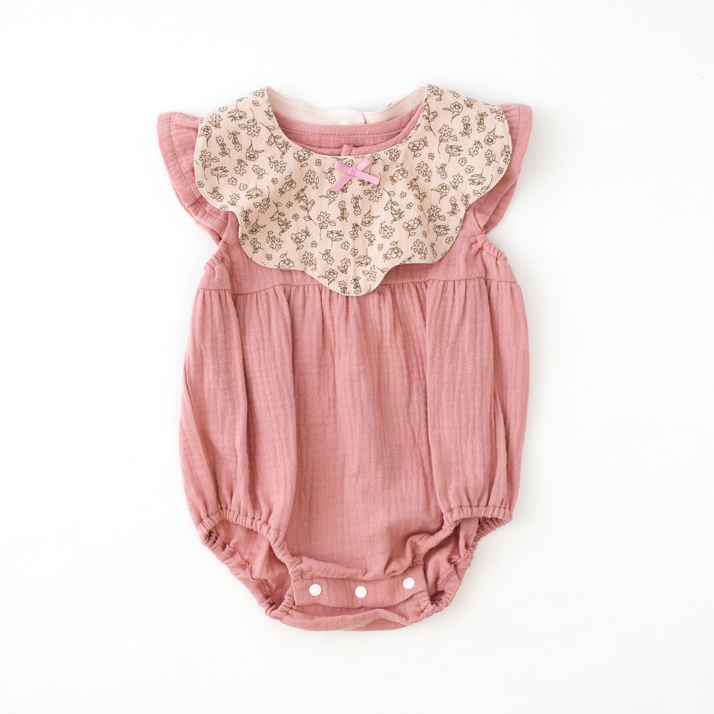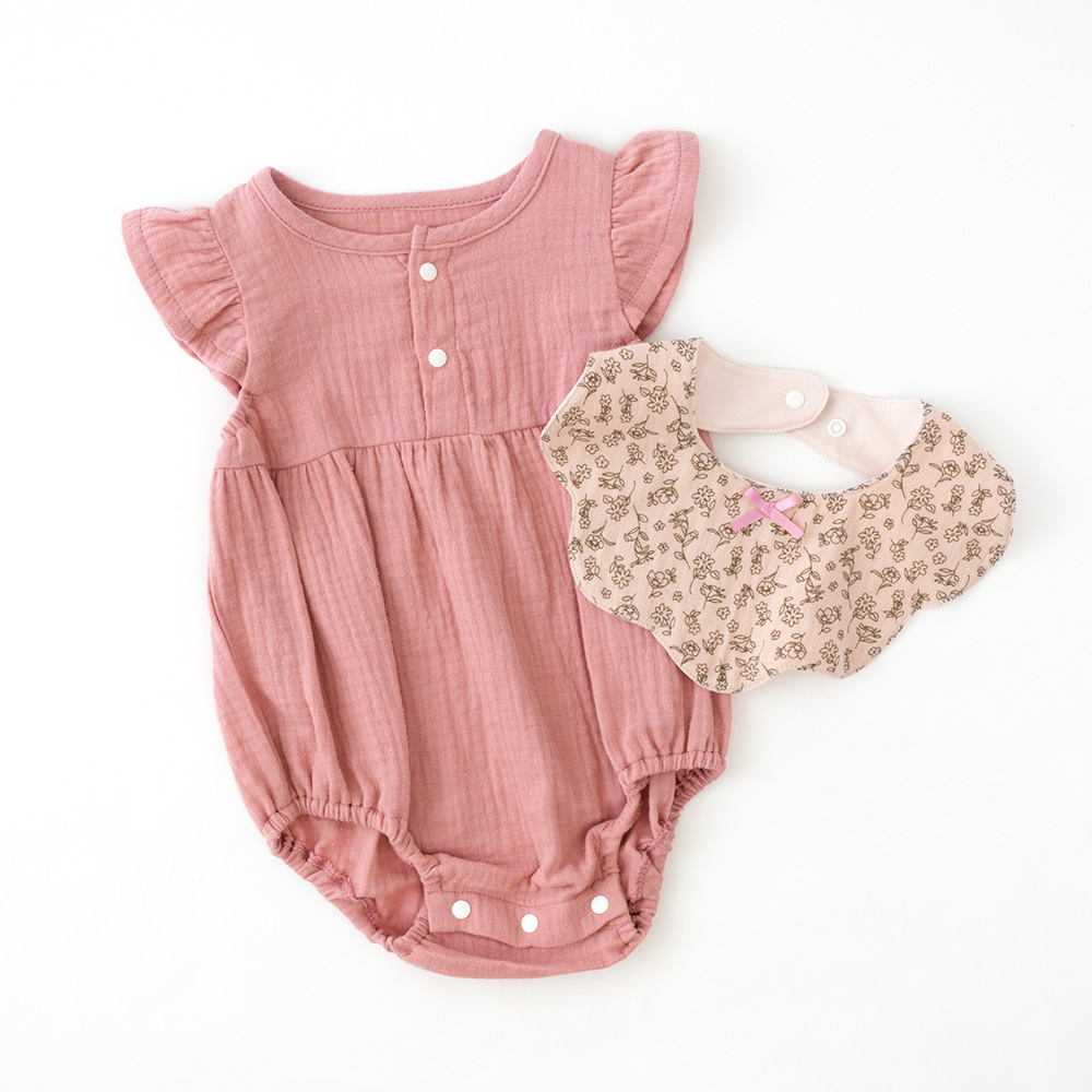 通気性に優れた柔らかガーゼ素材のロンパースに、おはなのスタイが付いた可愛いセット。