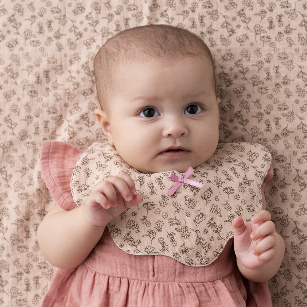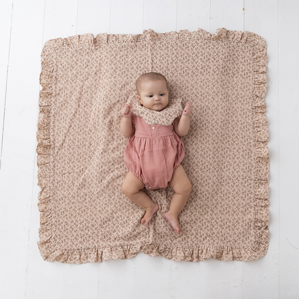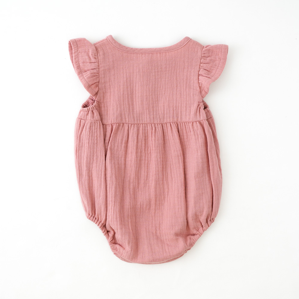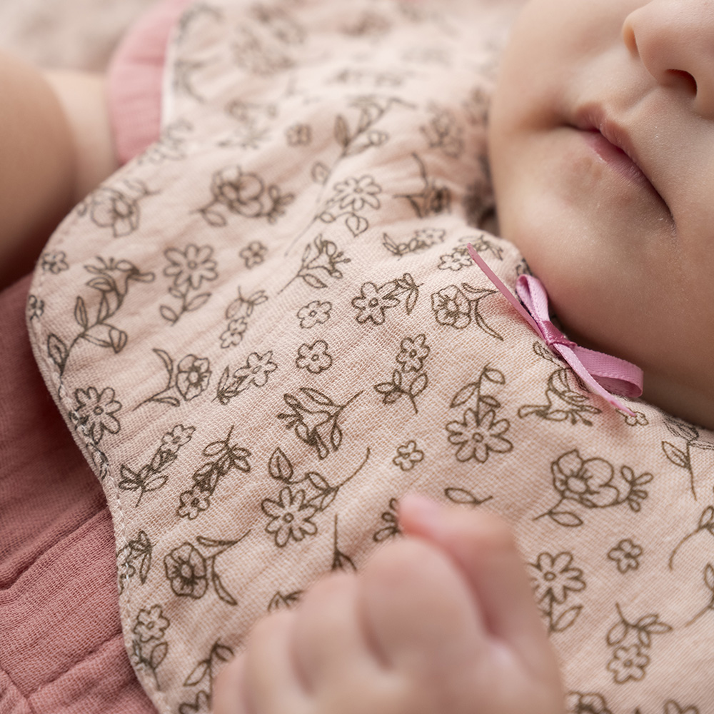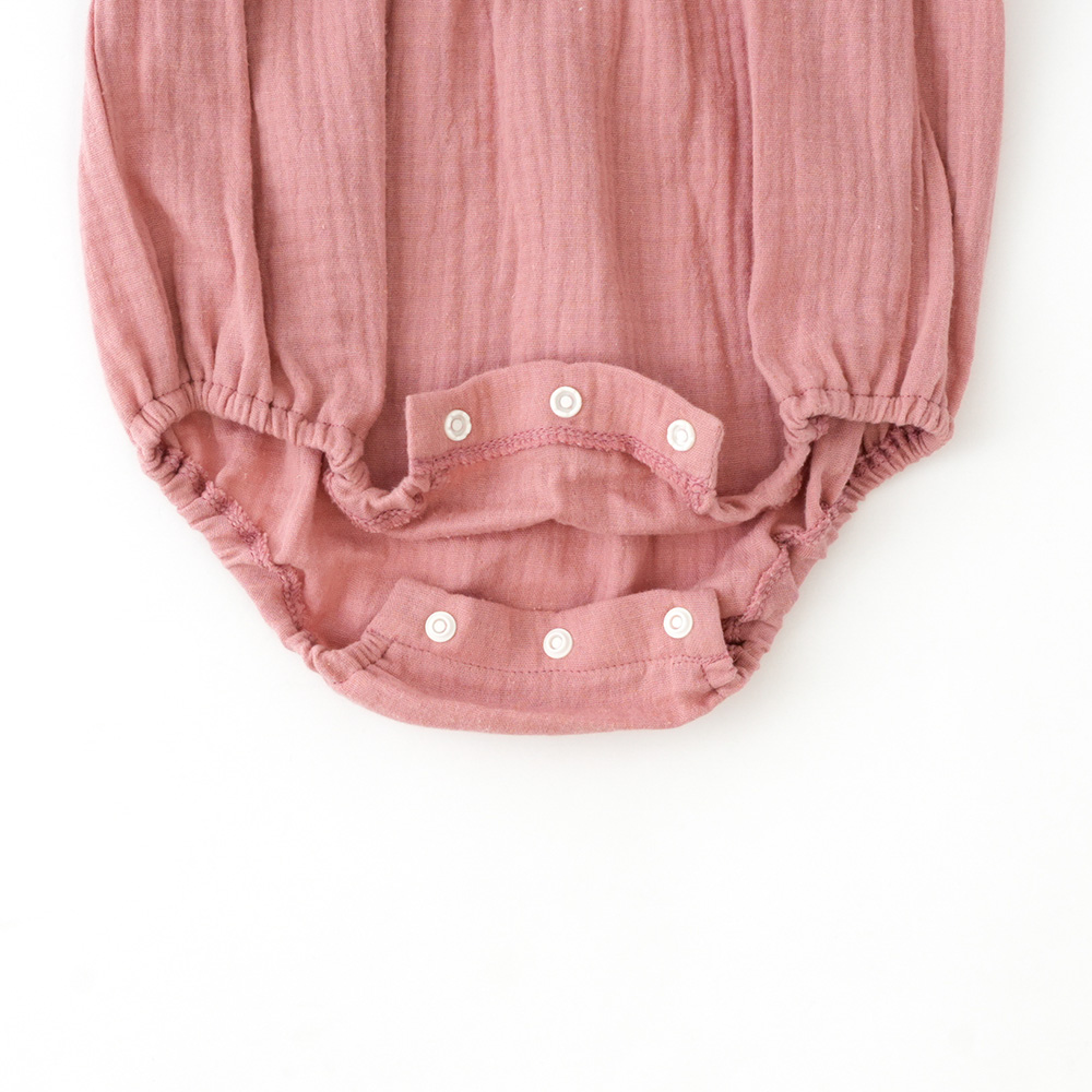 通気性に優れた柔らかガーゼ素材のロンパースに、おはなのスタイが付いた可愛いセット。