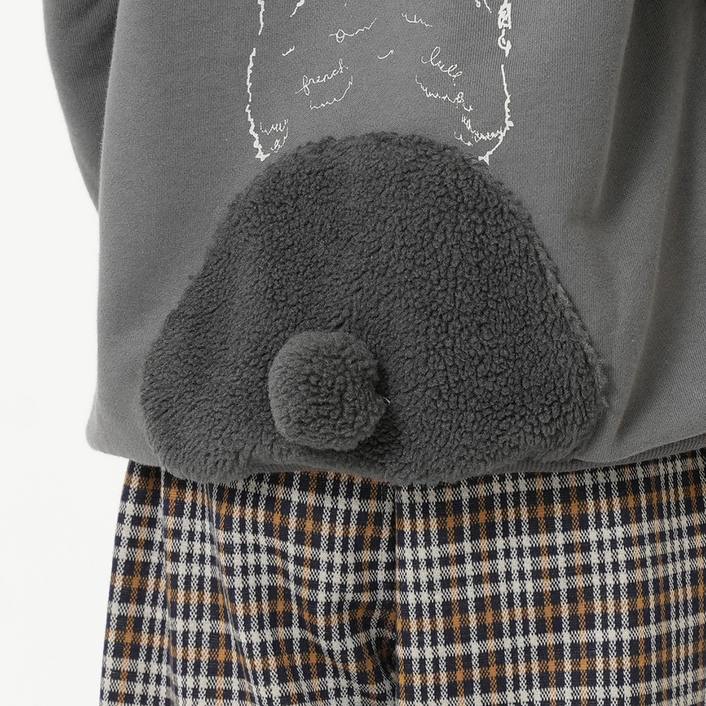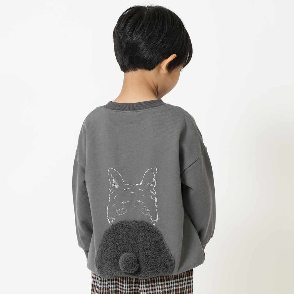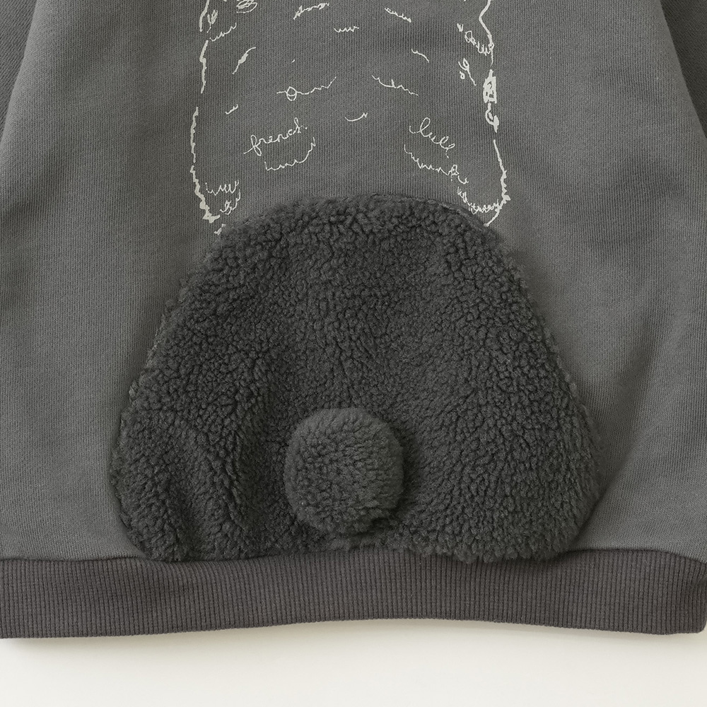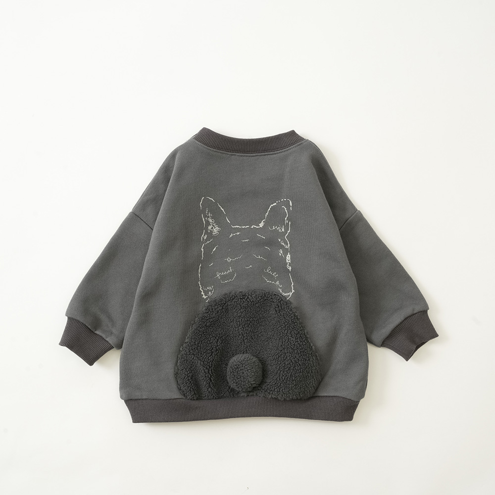 手書き風のフレンチブルがプリントされたトレーナー。Backにはボアがついてモコモコな後ろ姿がかわいい!