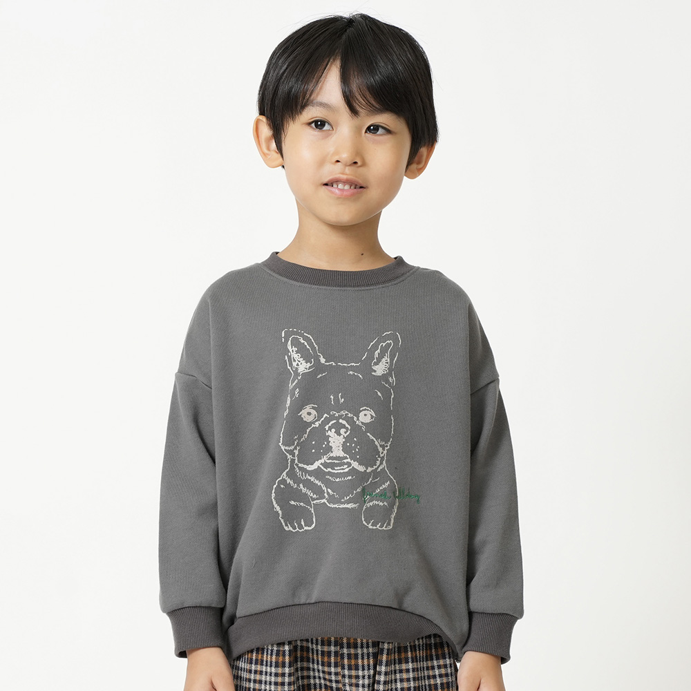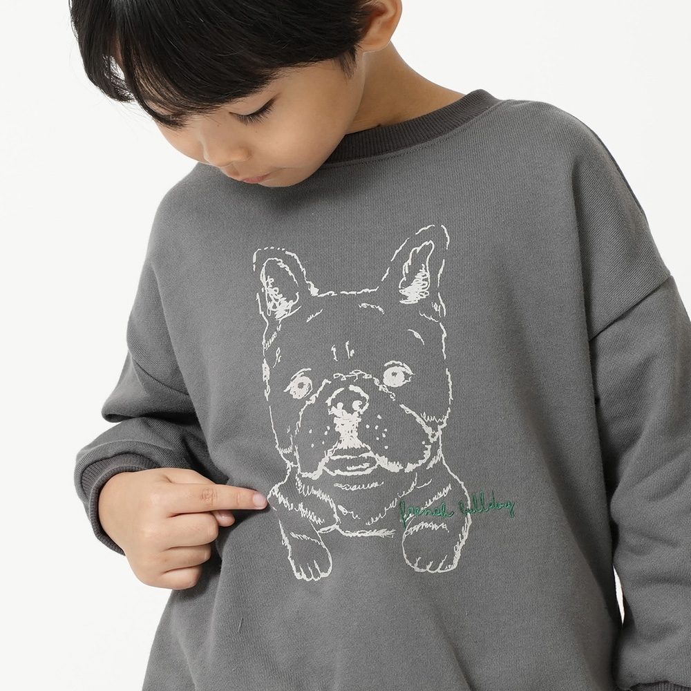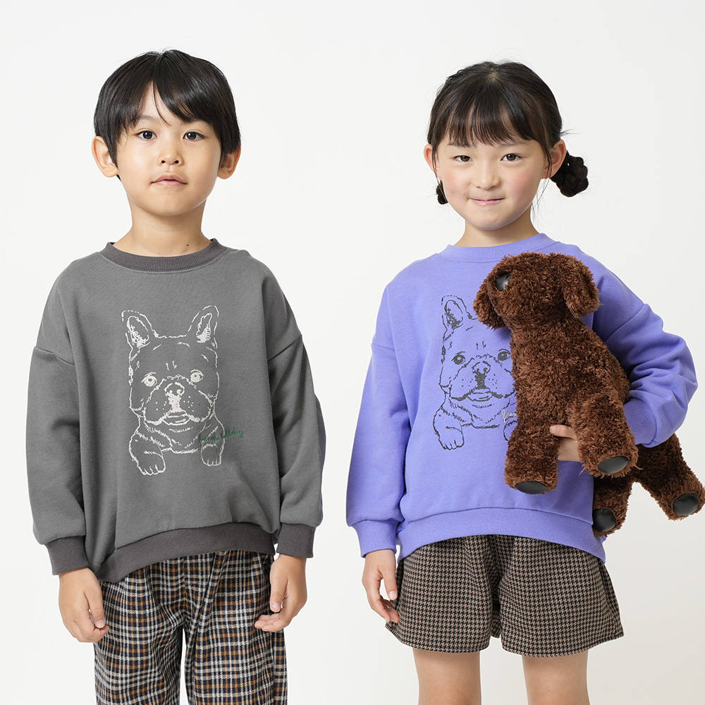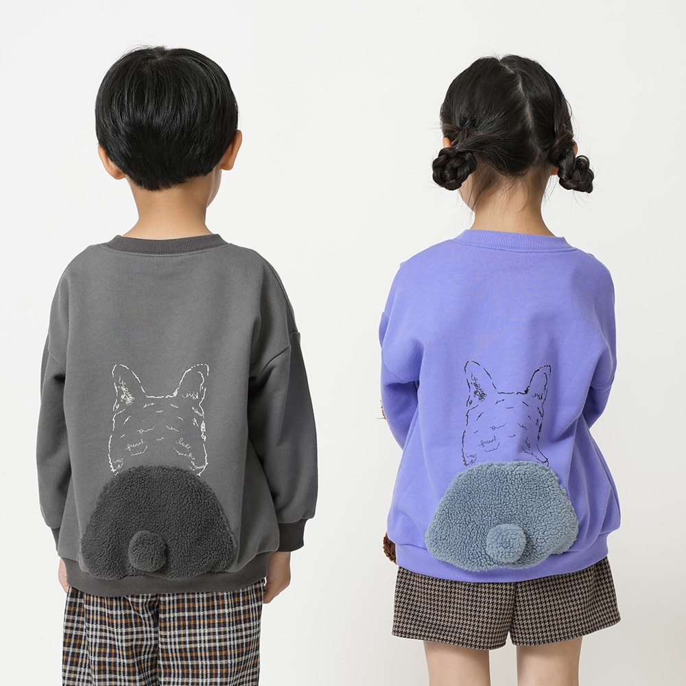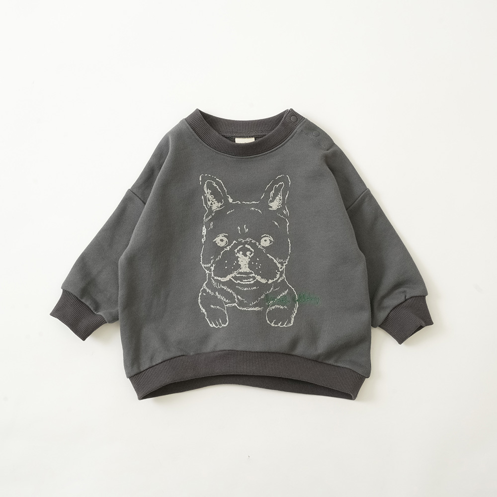 手書き風のフレンチブルがプリントされたトレーナー。Backにはボアがついてモコモコな後ろ姿がかわいい!
