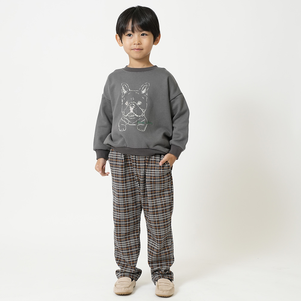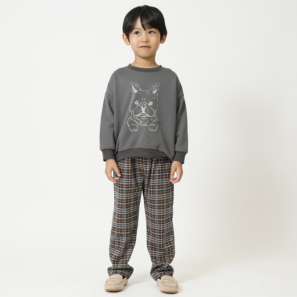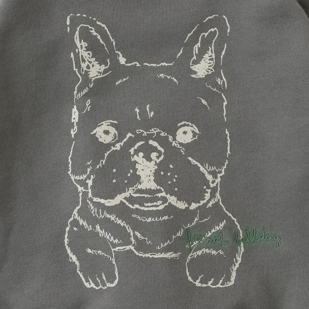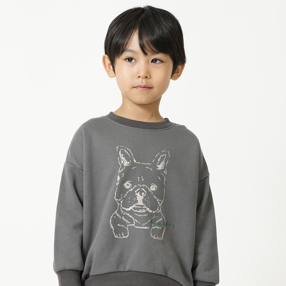 手書き風のフレンチブルがプリントされたトレーナー。Backにはボアがついてモコモコな後ろ姿がかわいい!