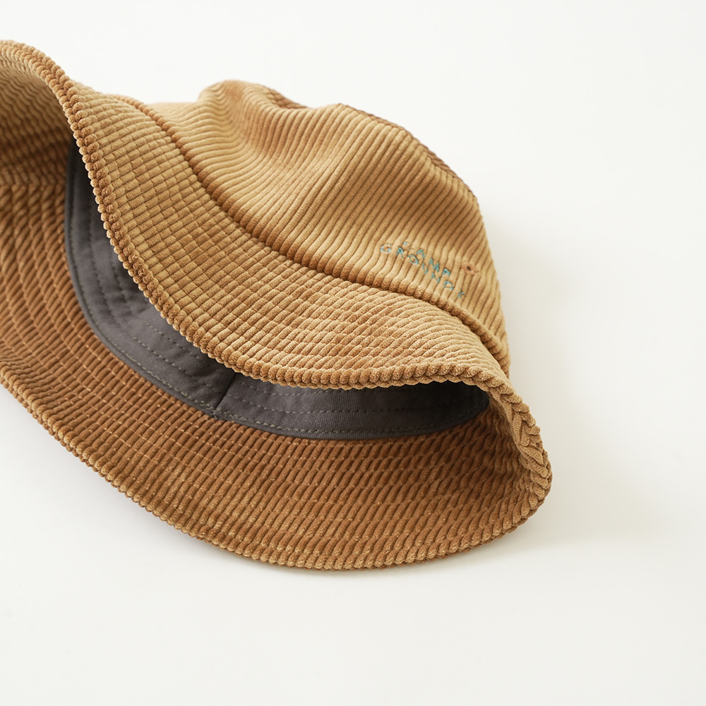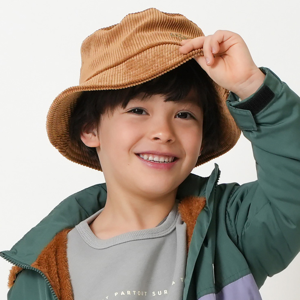 見た目もほっこりする柔らかコール天ハット。刺繍ロゴがポイント!