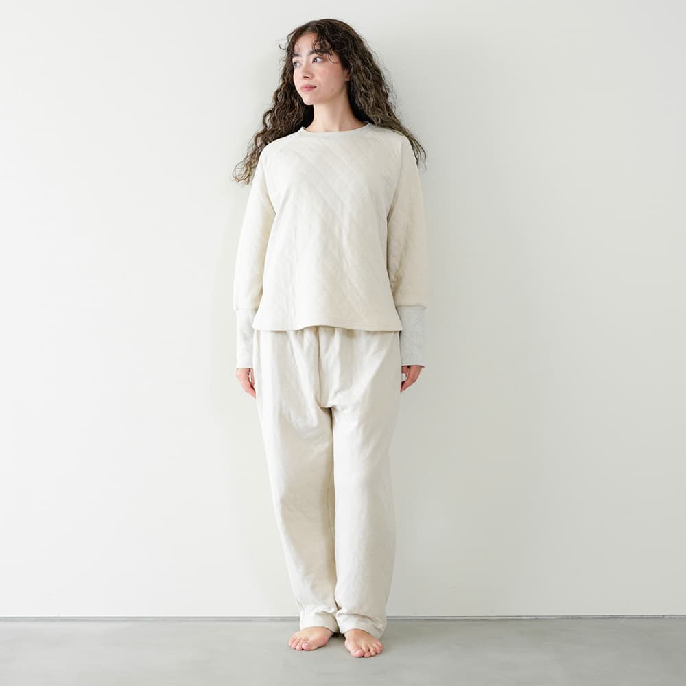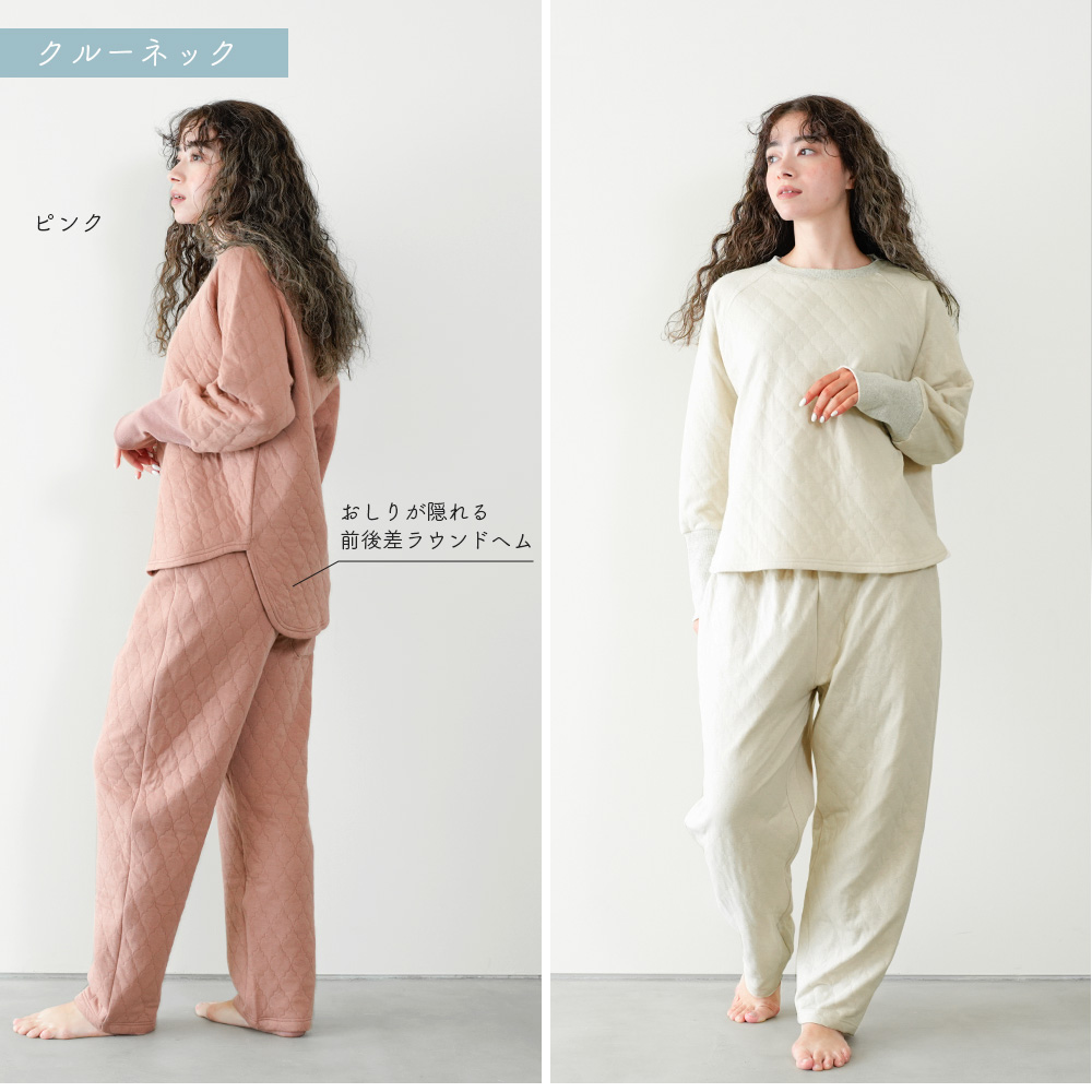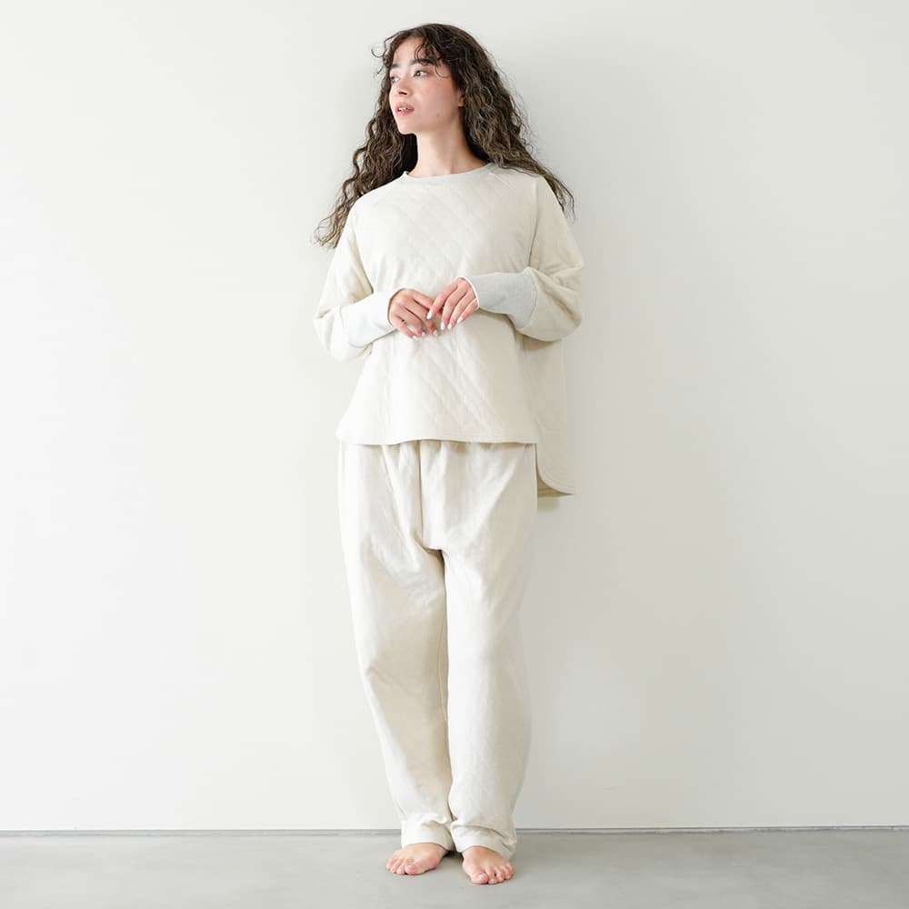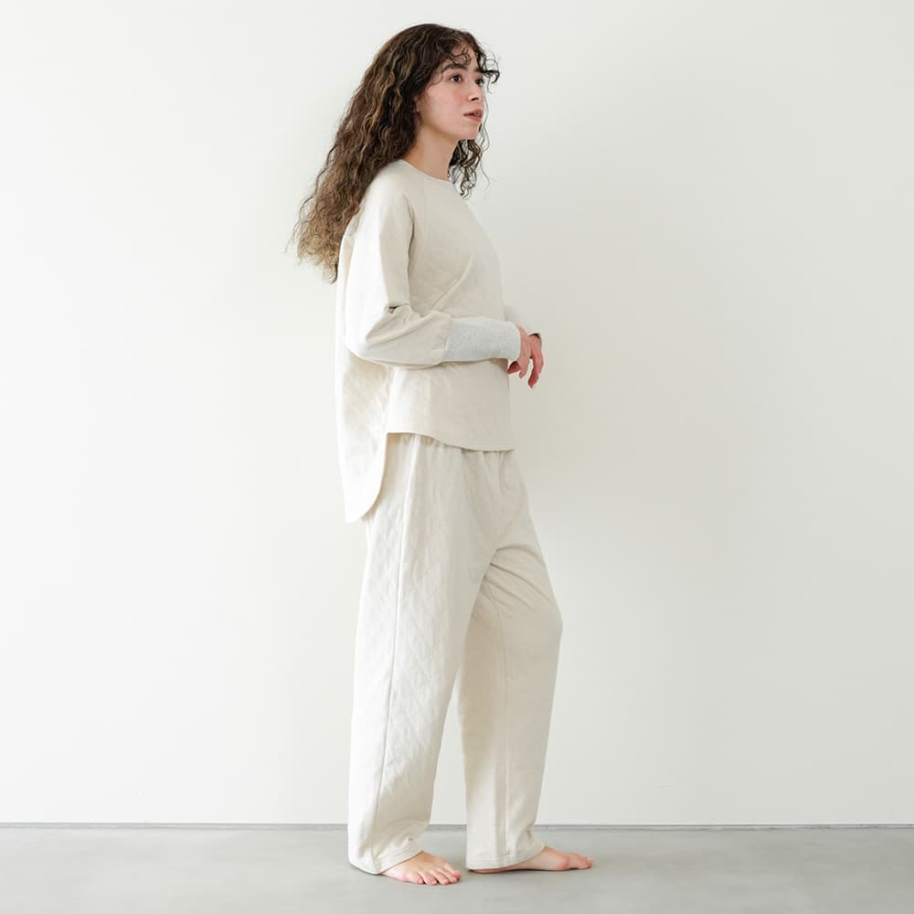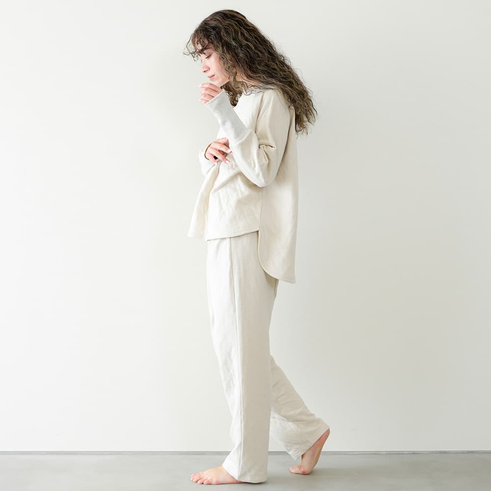 ラグランスリーブでゆったりとした着用感です。リラックス感のある、ラウンド裾デザインもポイント。