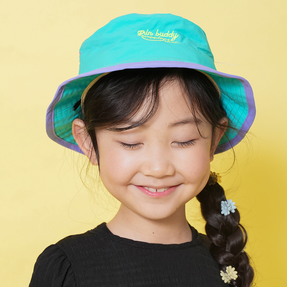 つば先のパイピングカラーと刺繍文字がこだわりポイント