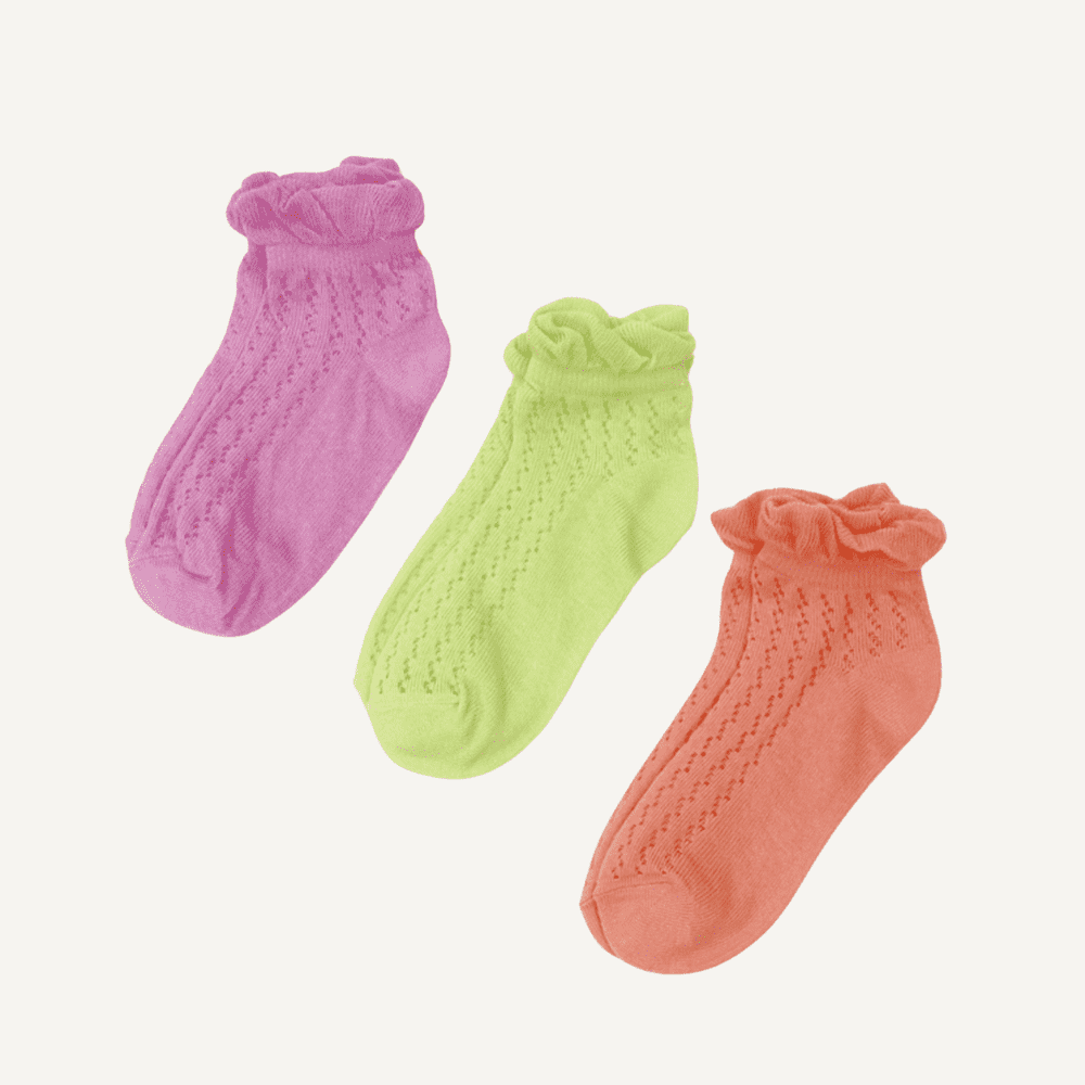 ポップなカラーラングと、履き口のデザインがかわいい3枚組。
