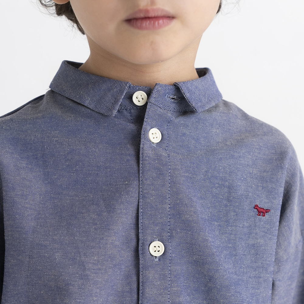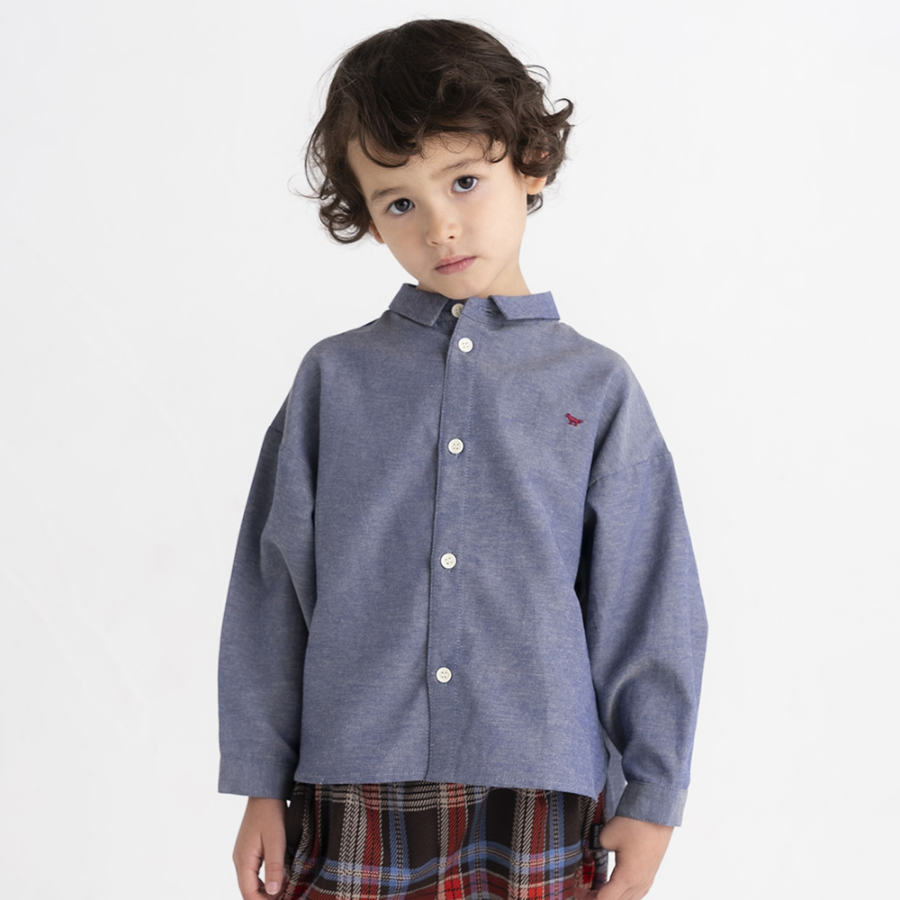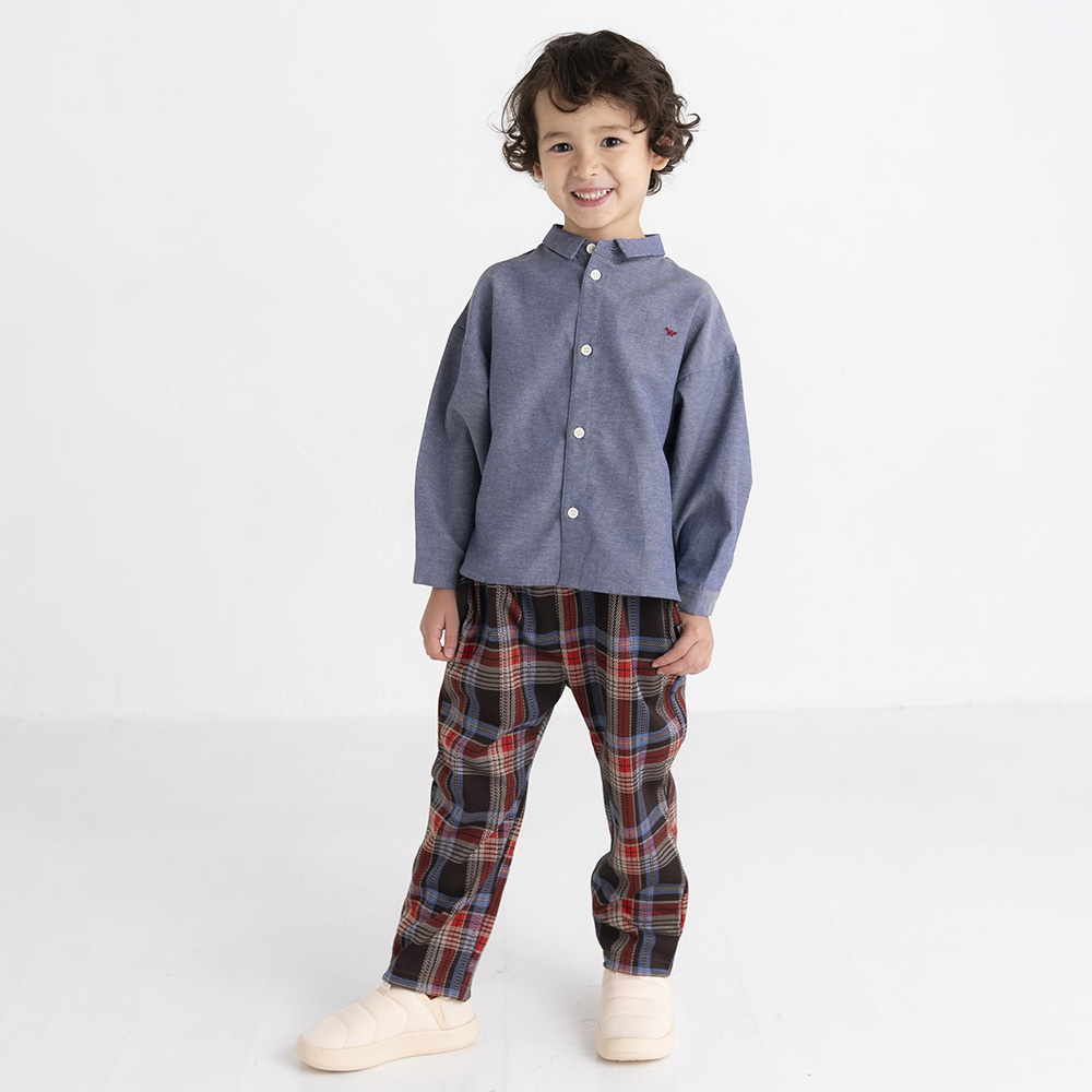 胸に小さなキツネの刺繍付き。トラッドなコーデにおすすめのオックス生地とシックなチェック柄の2色展開!
