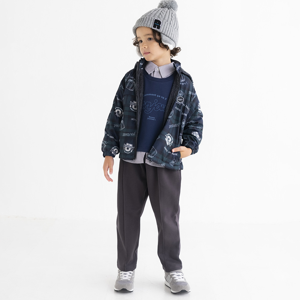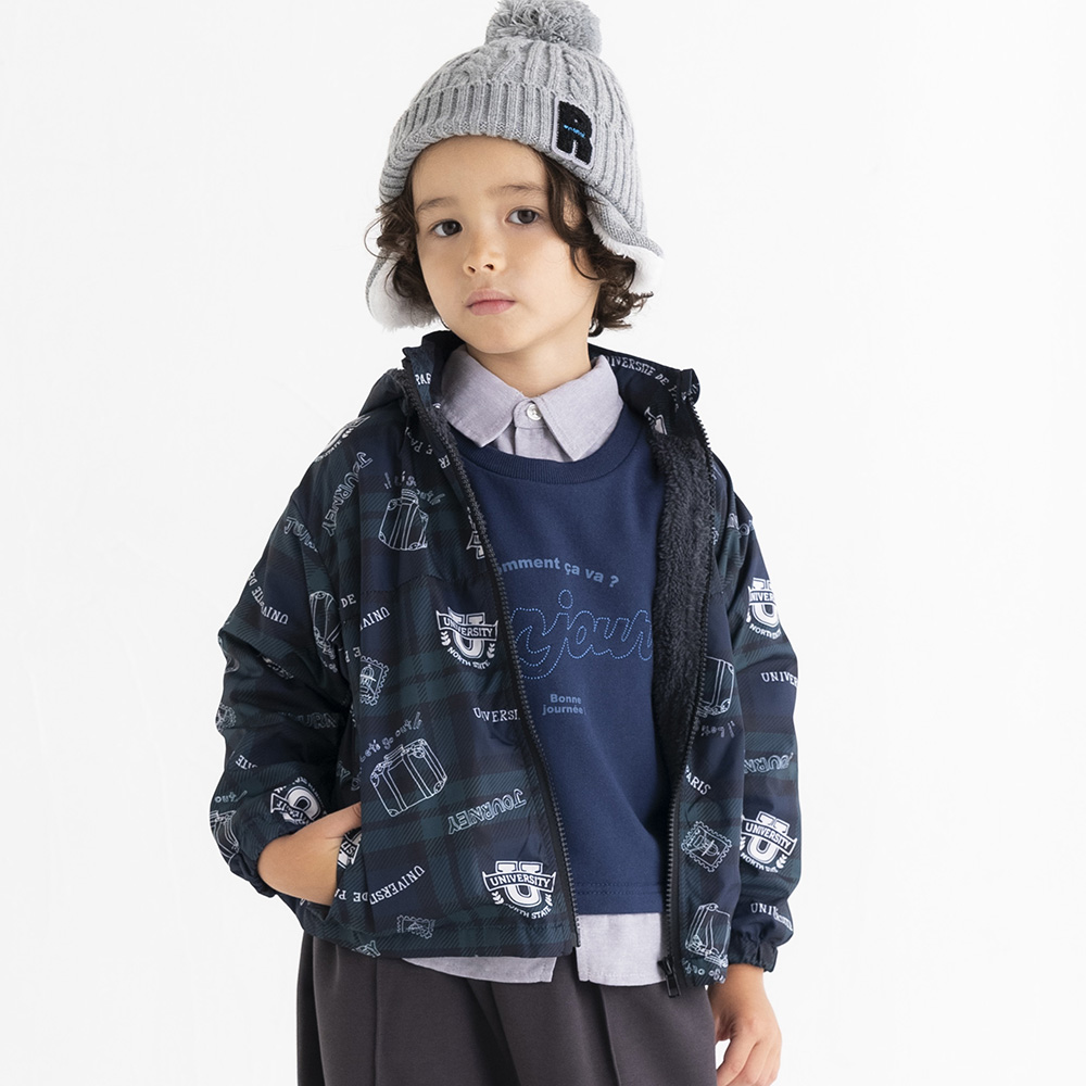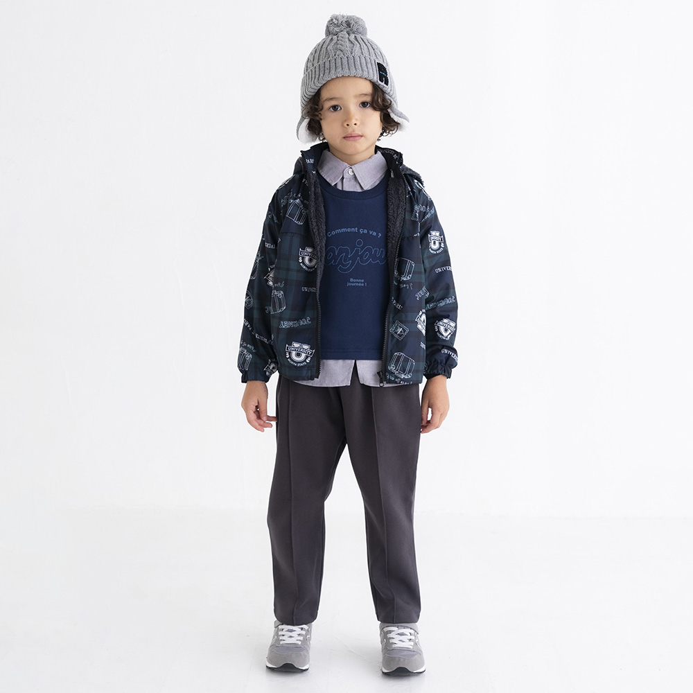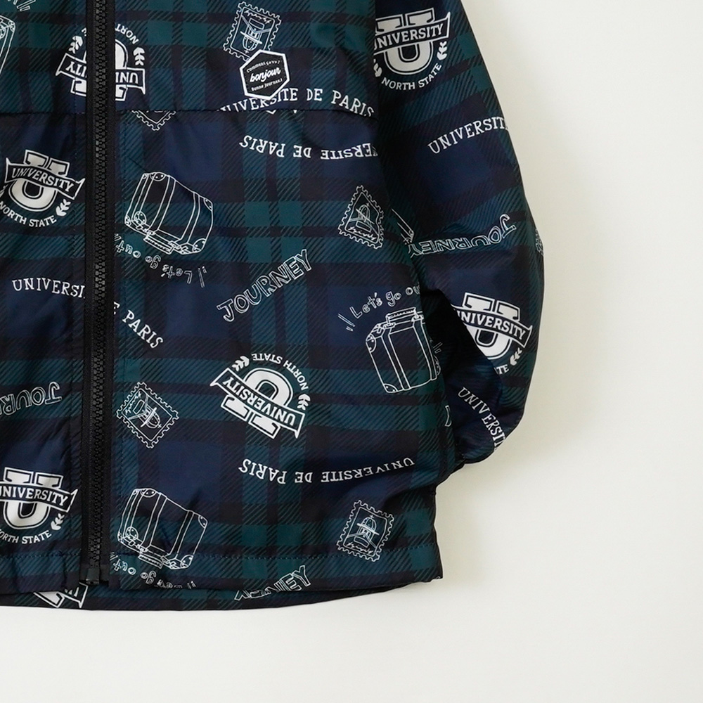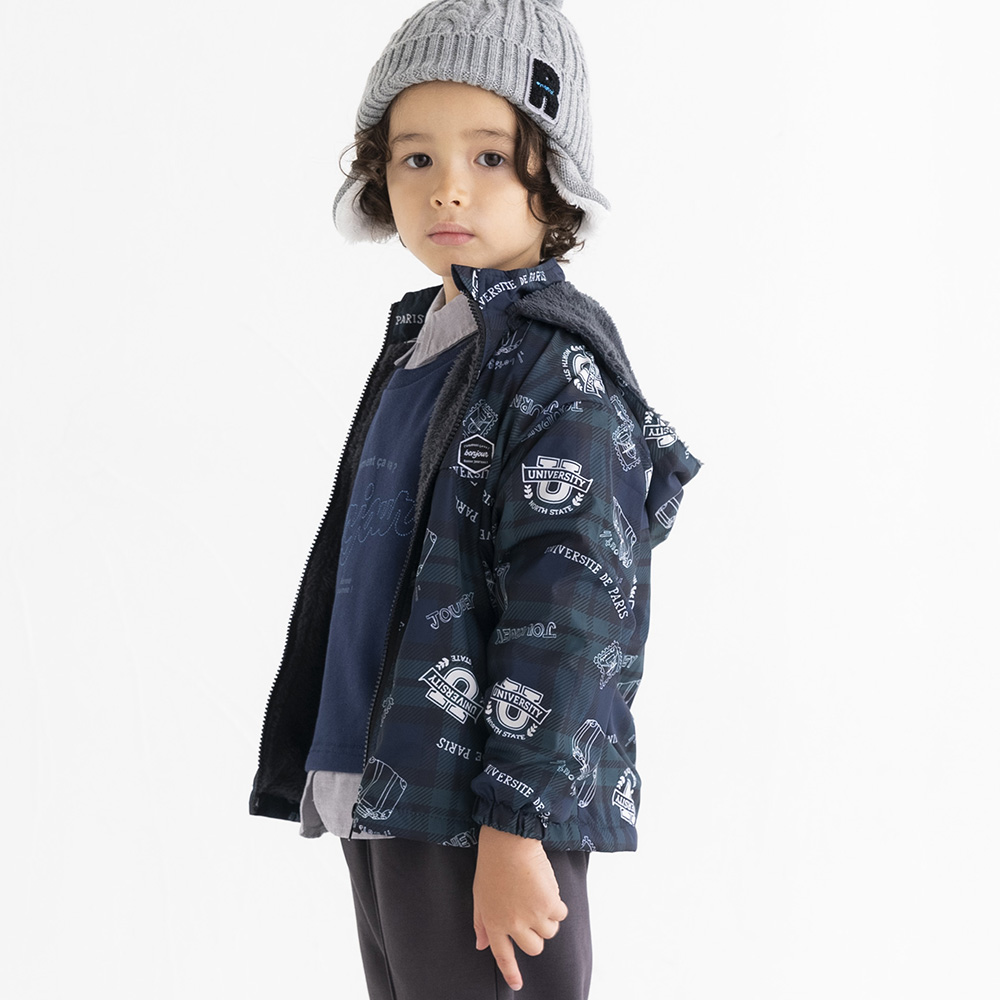 トラッドなチェック柄をベースに手書き風の柄とフラッグ柄の2色展開。裏地は薄手のボアファーになってます。