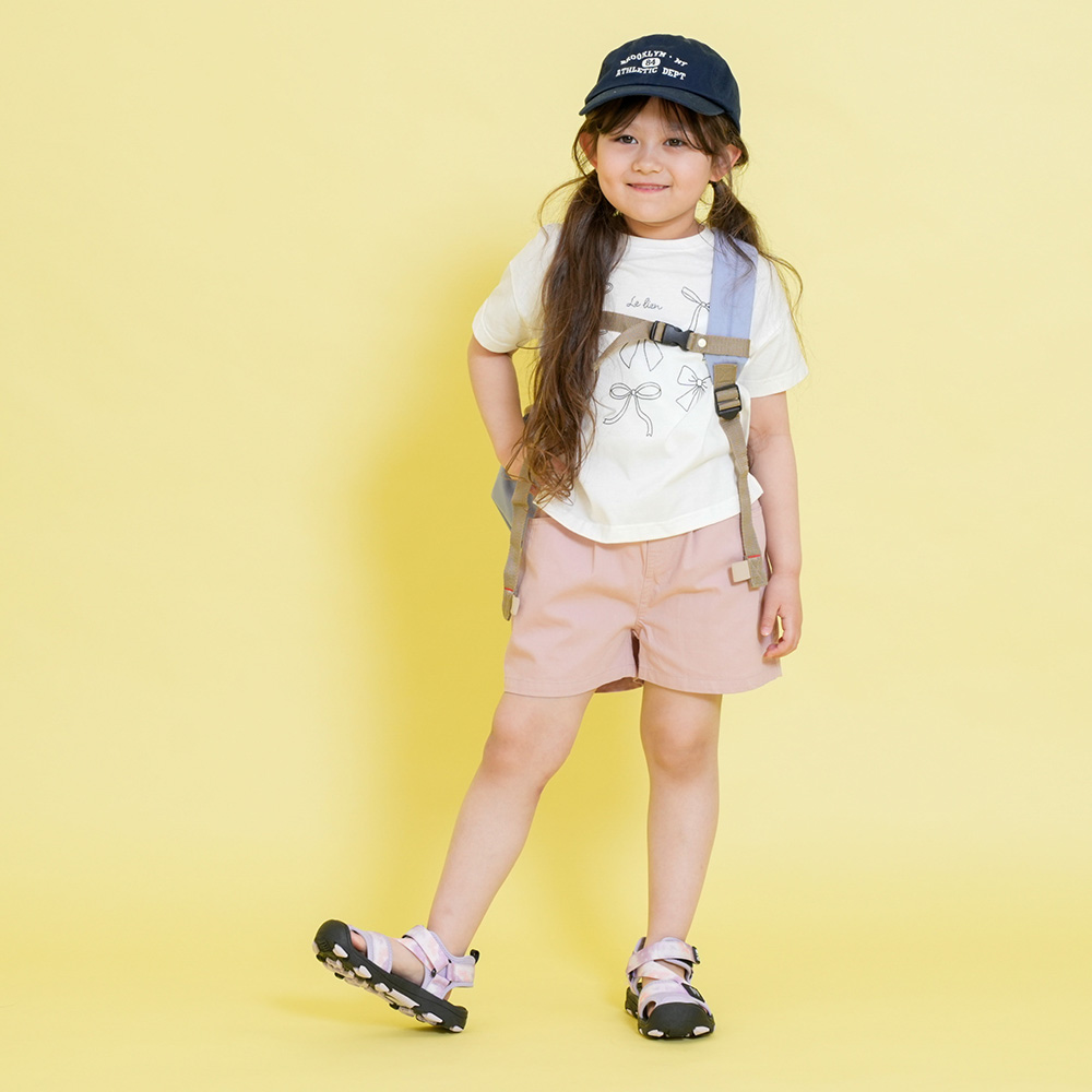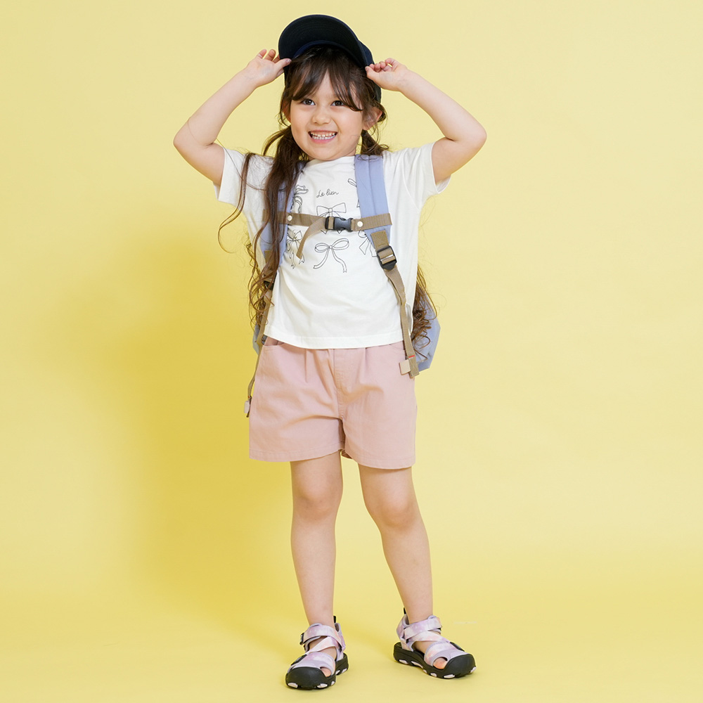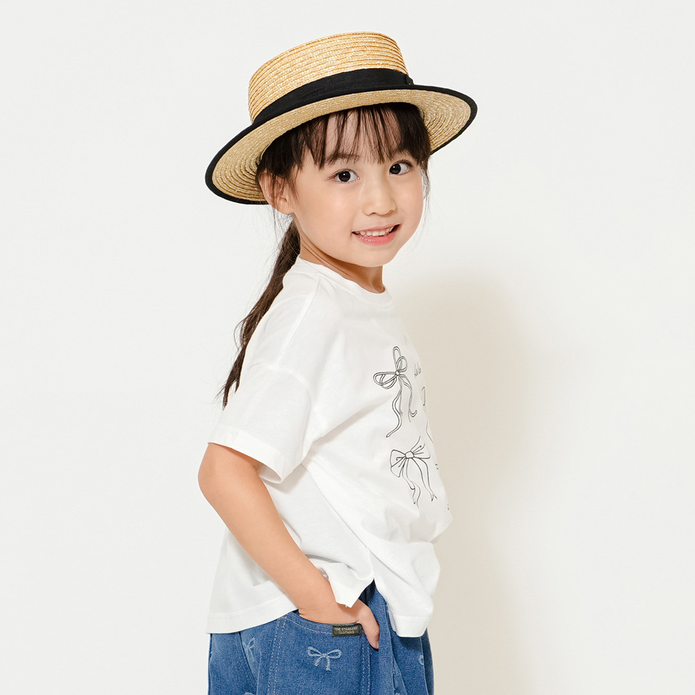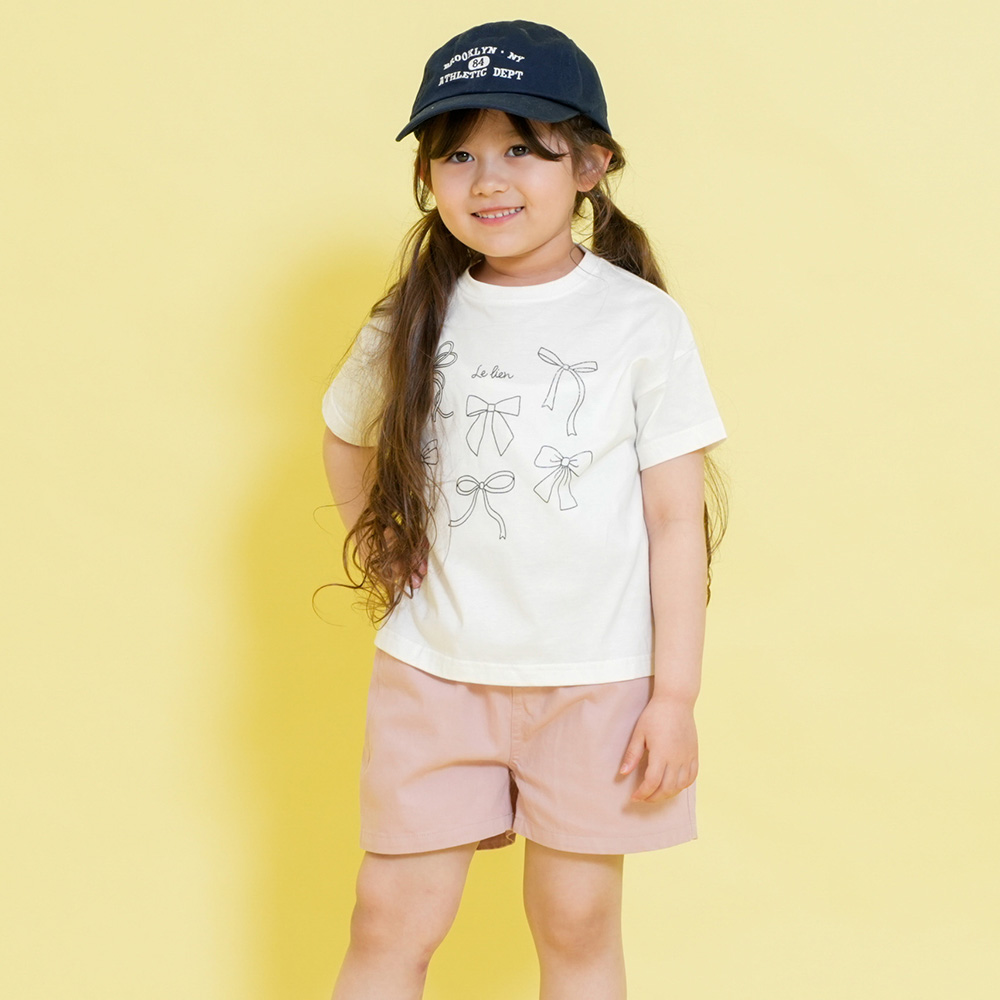 手書き風リボンのイラストがポイントのTシャツはゆったりシルエットにミニ袖が可愛い◎