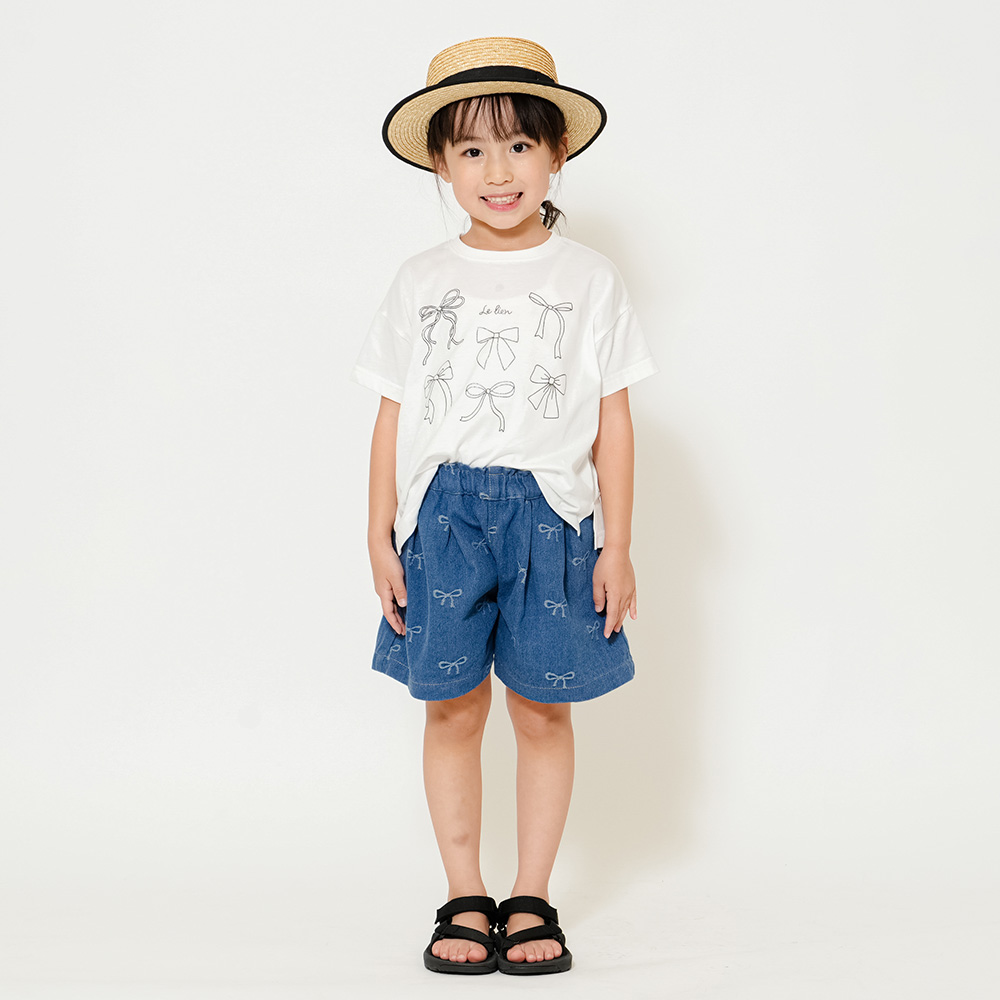 ラメプリントを施したキラキラが魅力♪リボンデニムを合わせるのもおすすめ◎