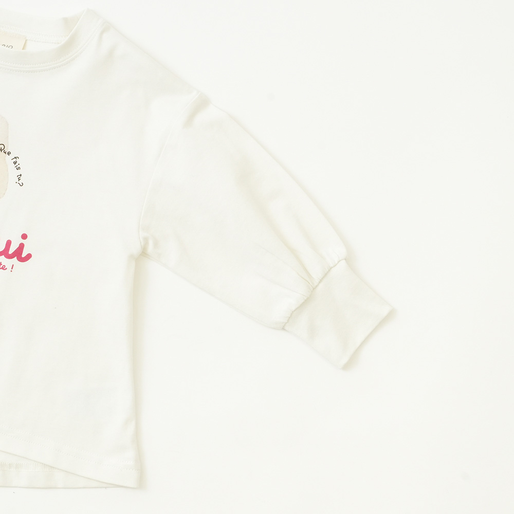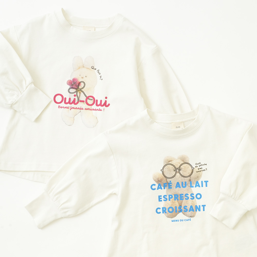 今シーズンは可愛いぬいぐるみフォトで登場。前後差のあるシルエットでボトムに合わせやすく袖口リブなのも嬉しい1枚。