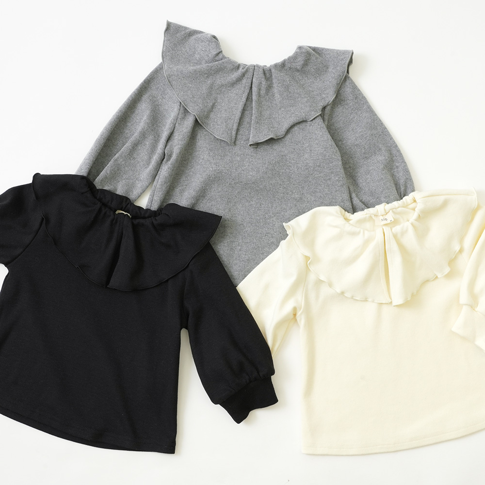 またレイヤードしたときの大きな衿がこんにちはと出てキュートです。カーディガンと合わせるのがおすすめです。