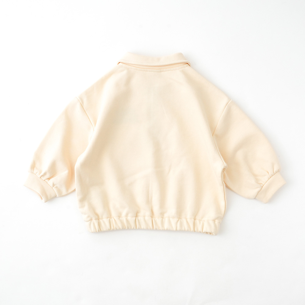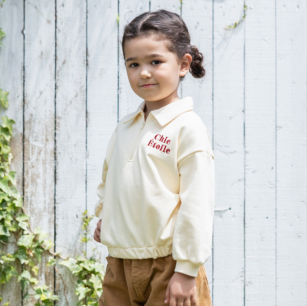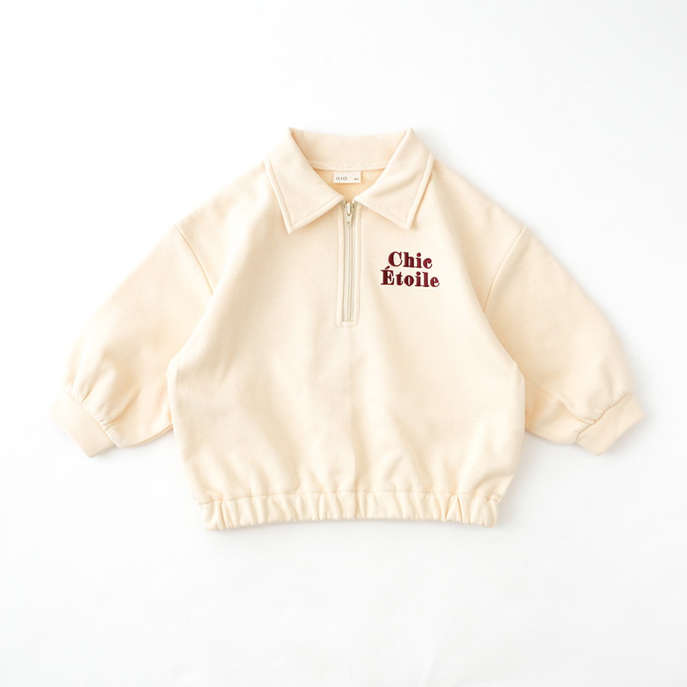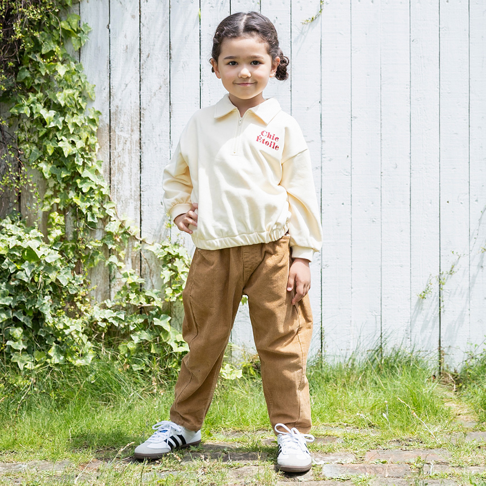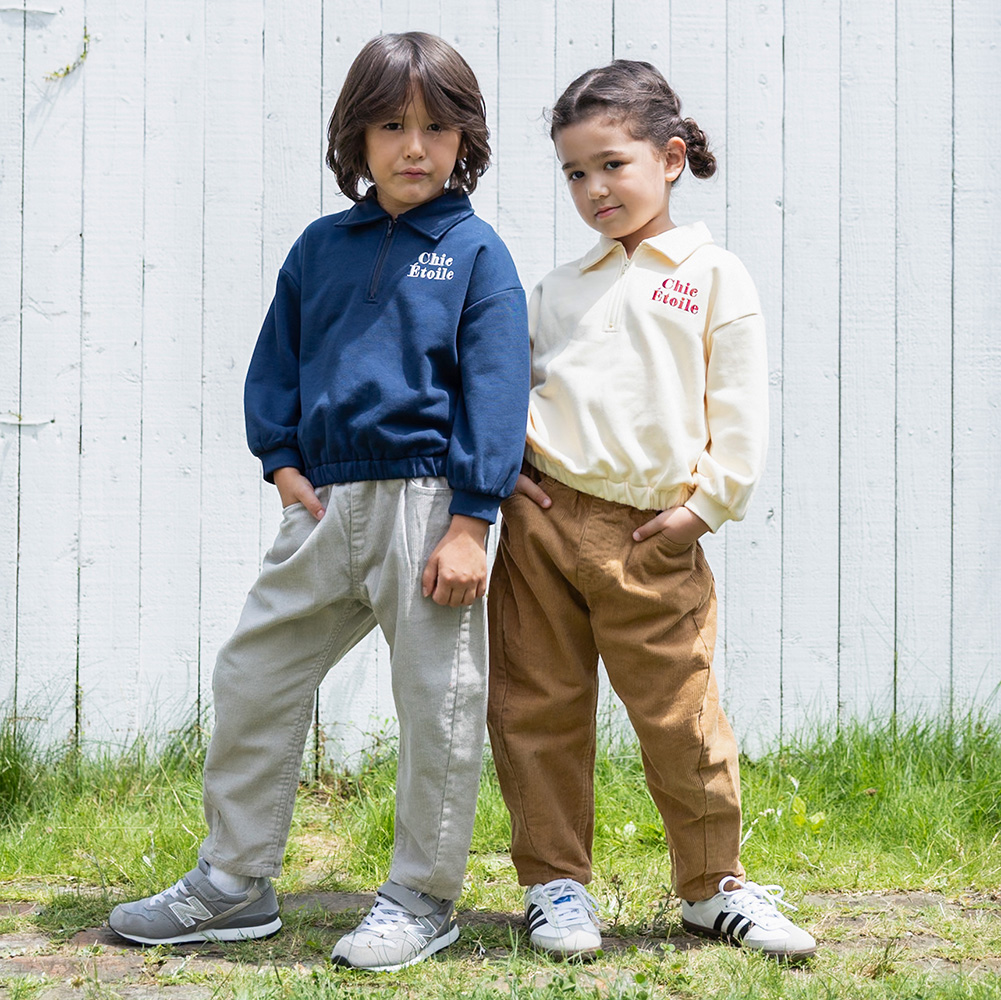レトロな雰囲気の襟付きハーフジップデザインと、こだわりのロゴ刺繍がポイント。
