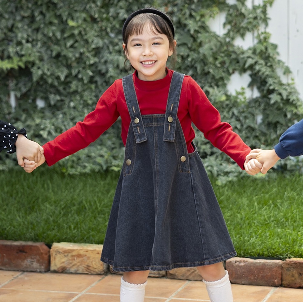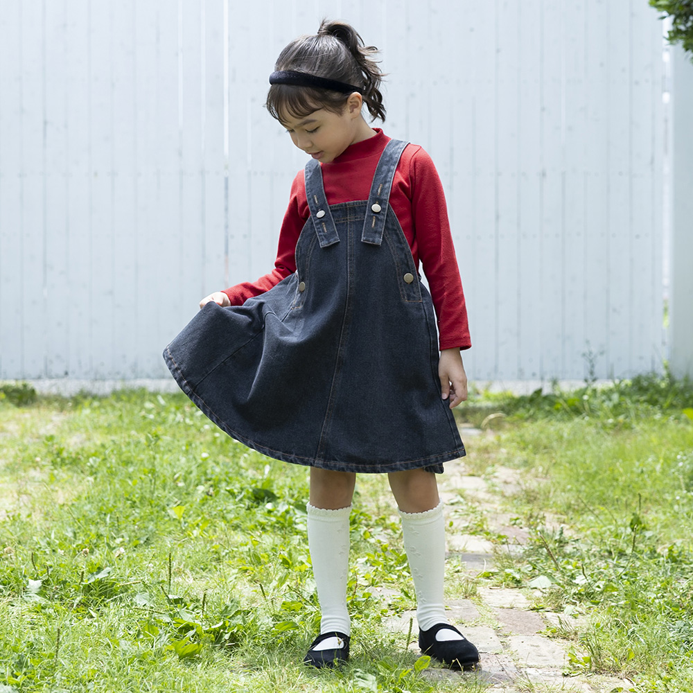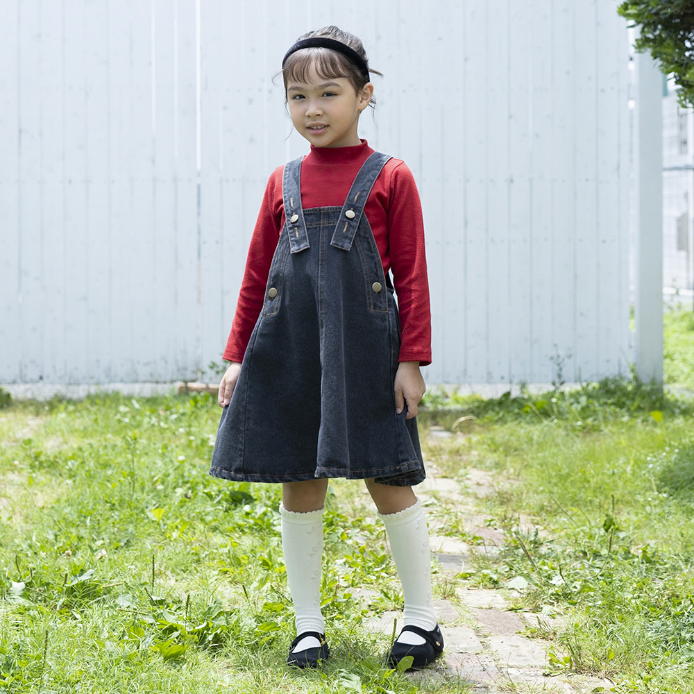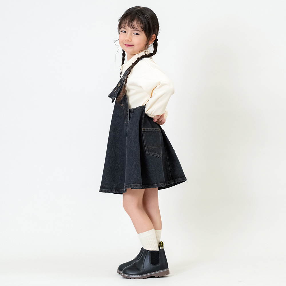 デニムと季節感あるコーデュロイ素材を展開。肩紐は調節可能で、成長に合わせてぴったりフィットします。