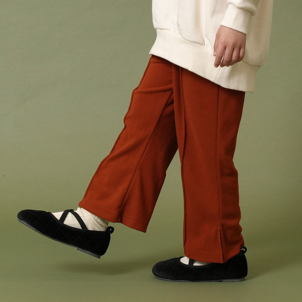 もっちり柔らか履き心地の良いフレアパンツは、ピンタックとサイドスリットを施しこなれ感◎