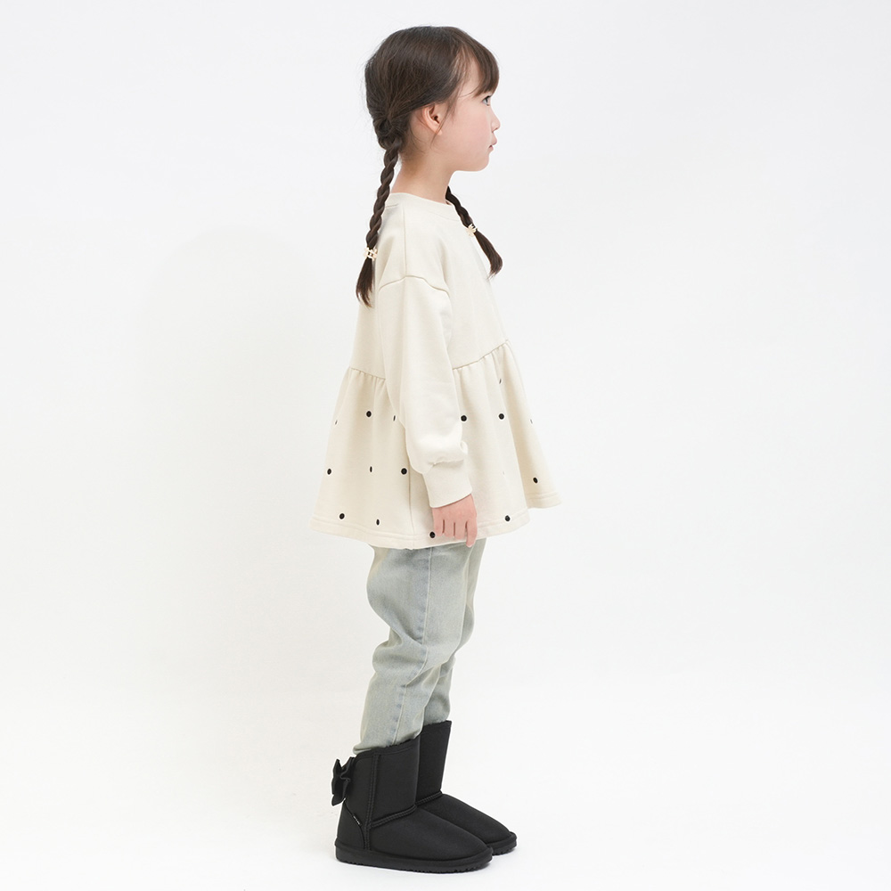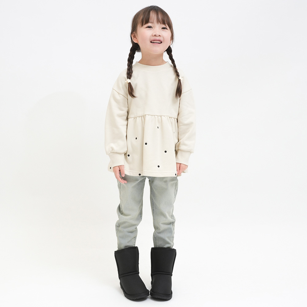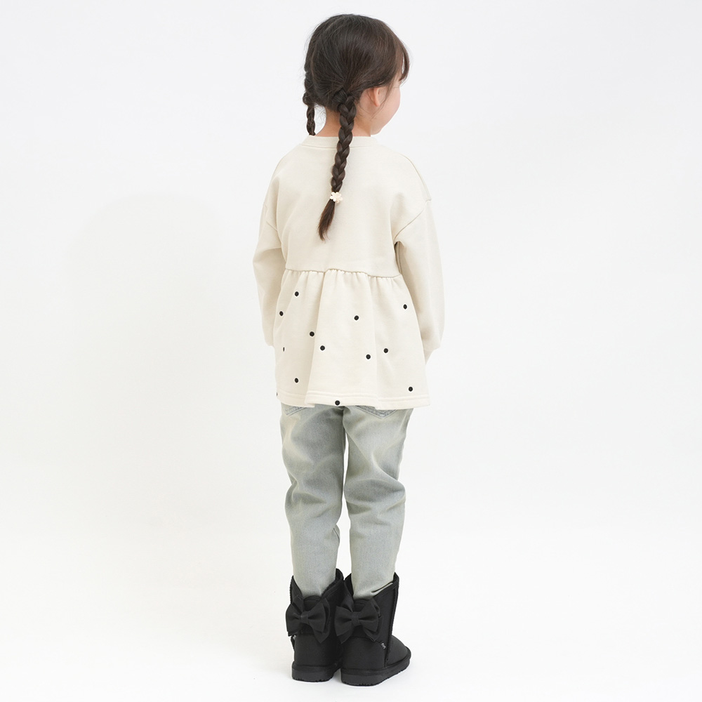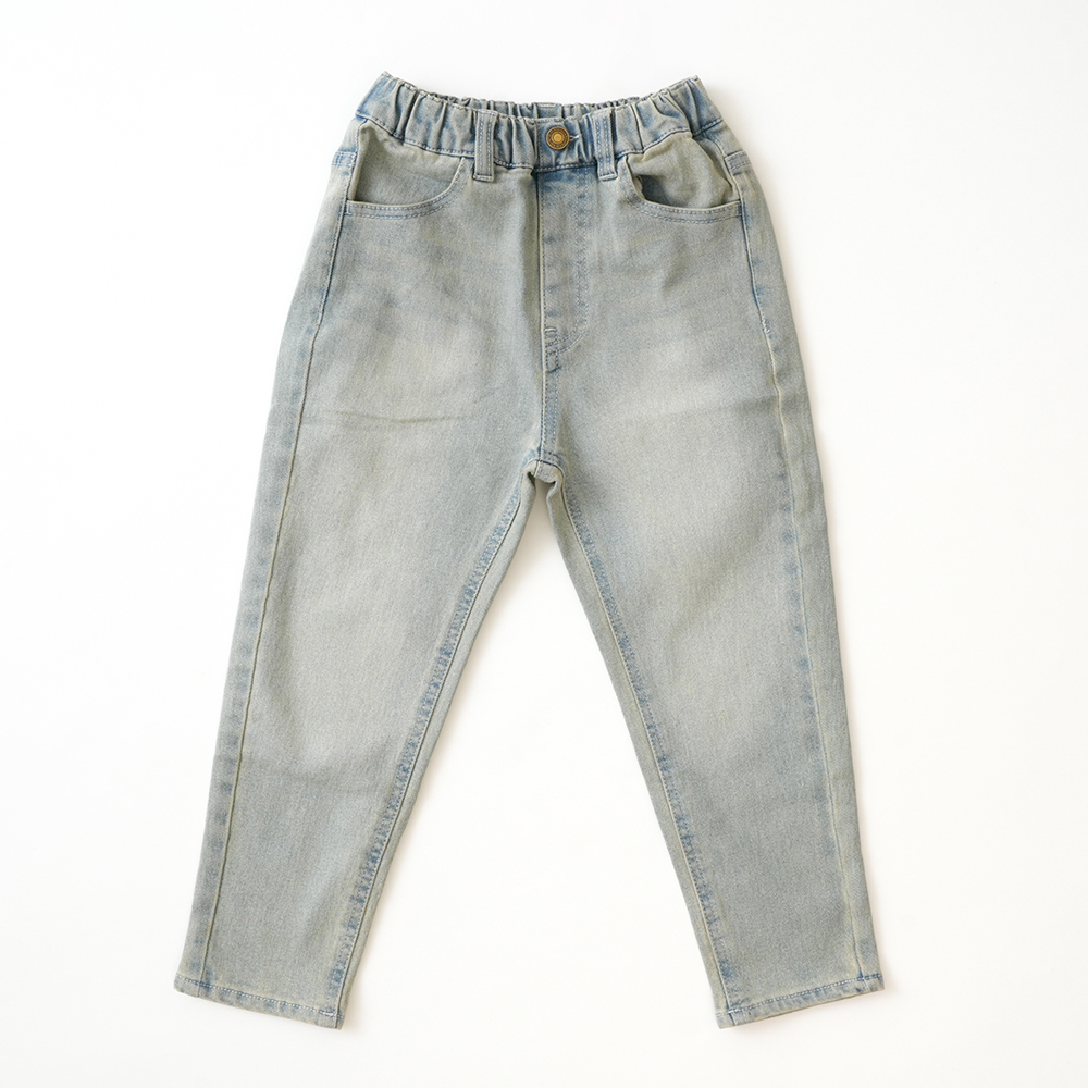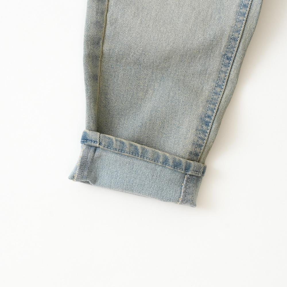 大人顔負けのおしゃれな加工感が魅力で、シルエットもすっきりスタイルアップ。