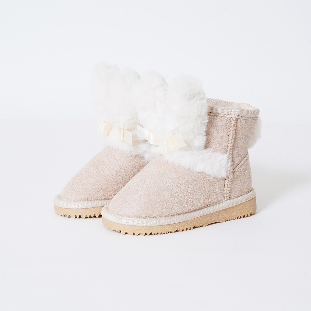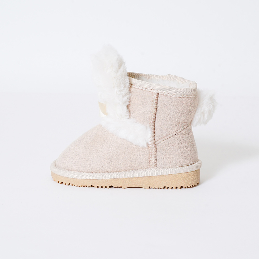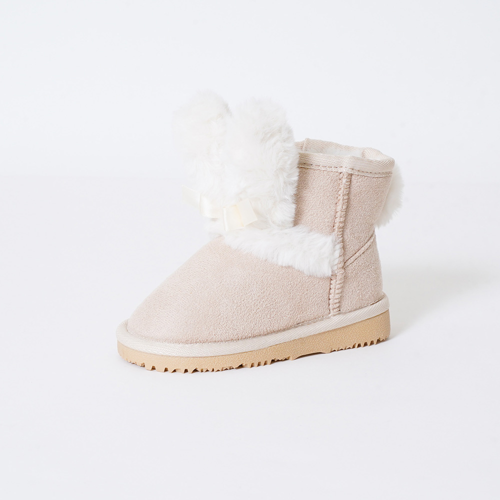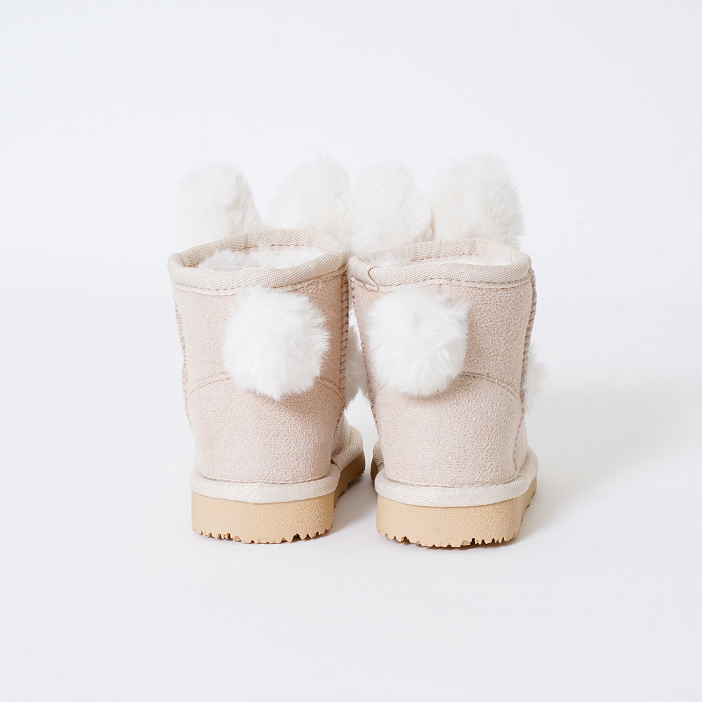 ふわふわウサギのお耳としっぽがついたキュートなファーブーツ。