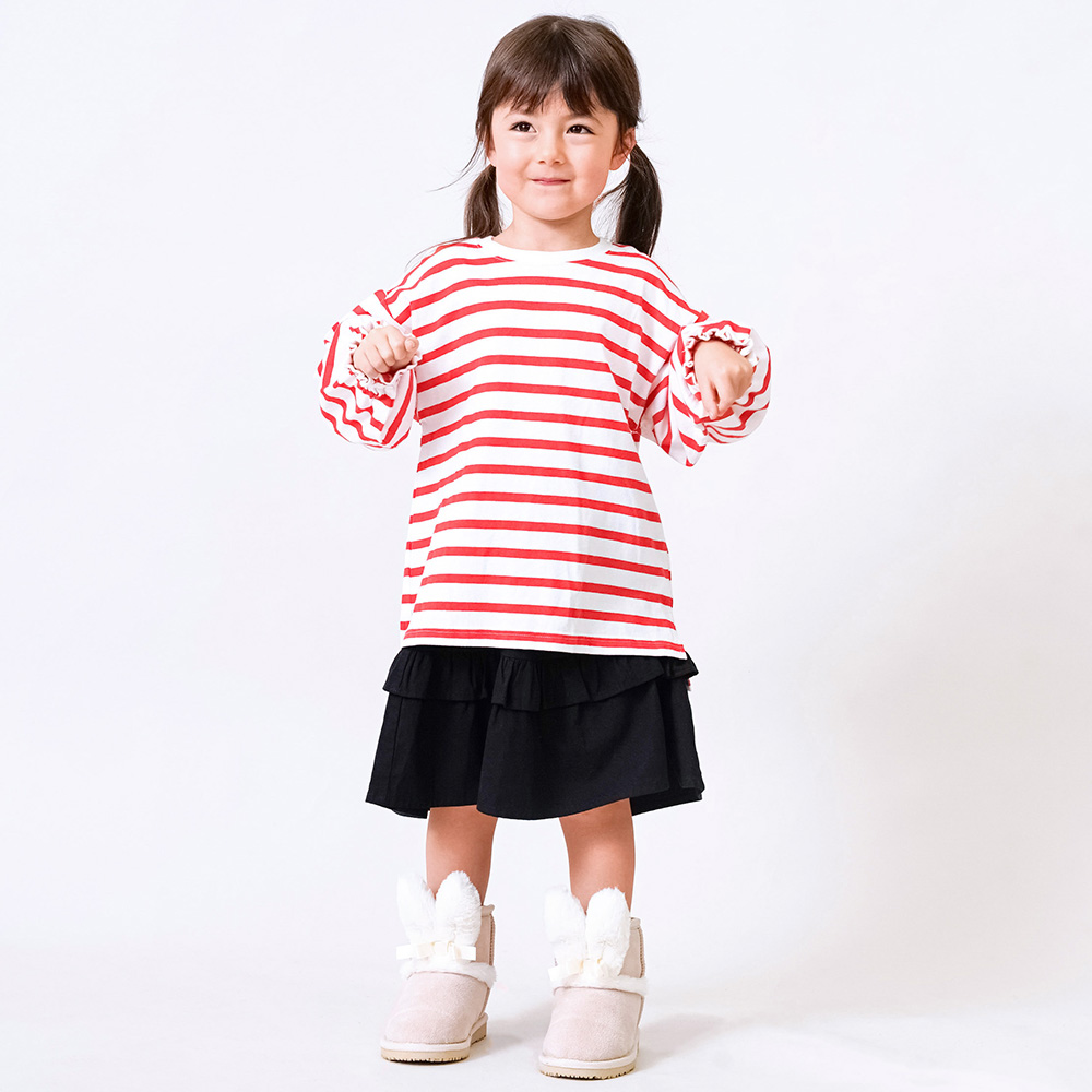 パンツでもスカートでも、様々なボトムスと合わせていただきやすいアイテム。