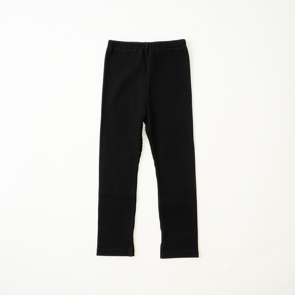 柔らかな綿素材(綿97%)。足首のリブがアクセントになり、柔らかな伸縮性で動きやすいのが特徴です。程よい厚みで、秋冬から春先まで使っていただけます。