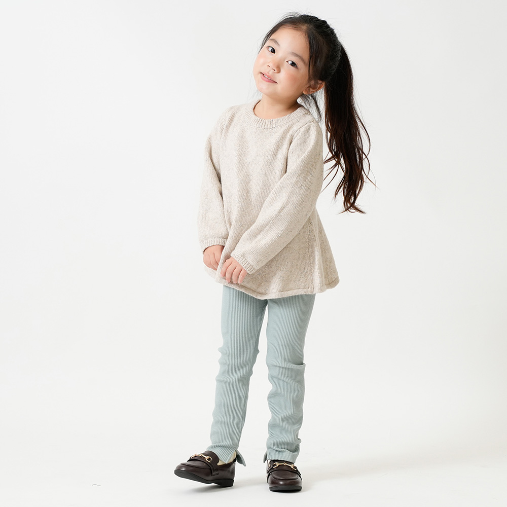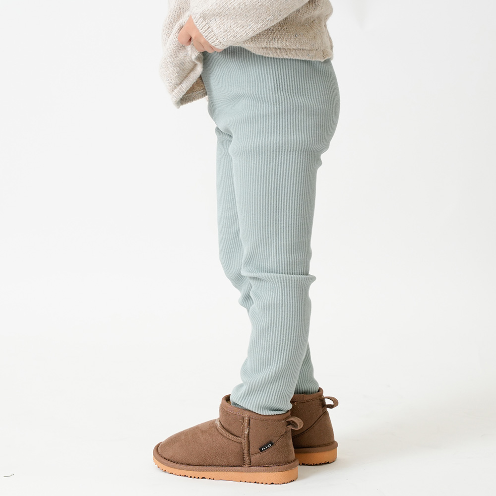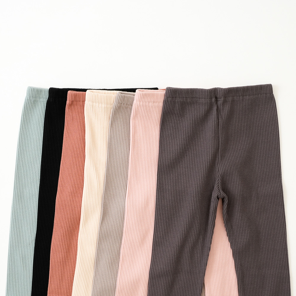 柔らかな綿素材(綿97%)。足首のリブがアクセントになり、柔らかな伸縮性で動きやすいのが特徴です。程よい厚みで、秋冬から春先まで使っていただけます。