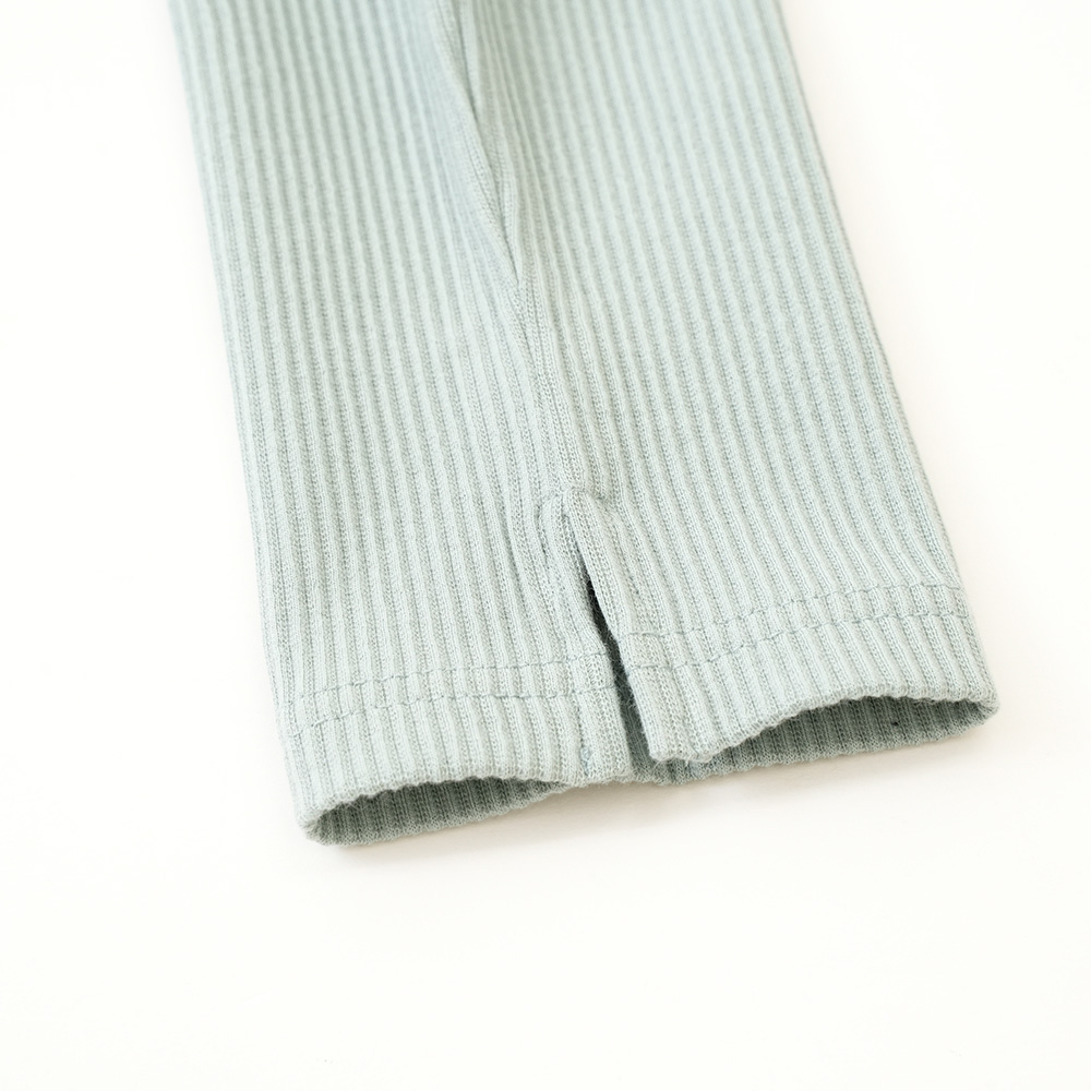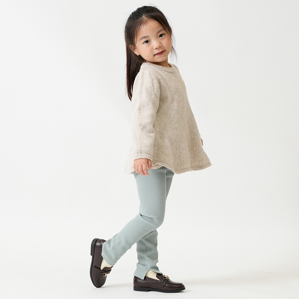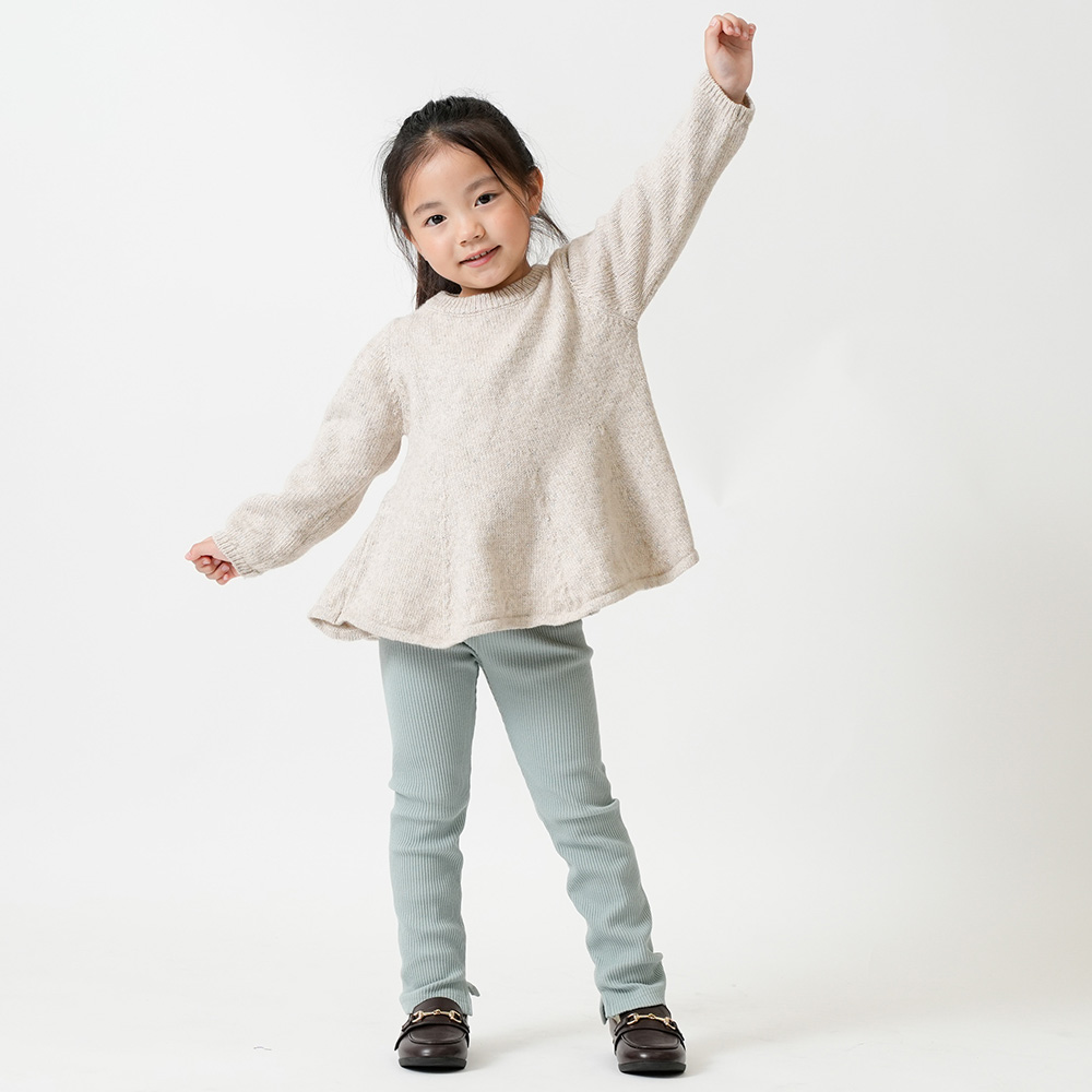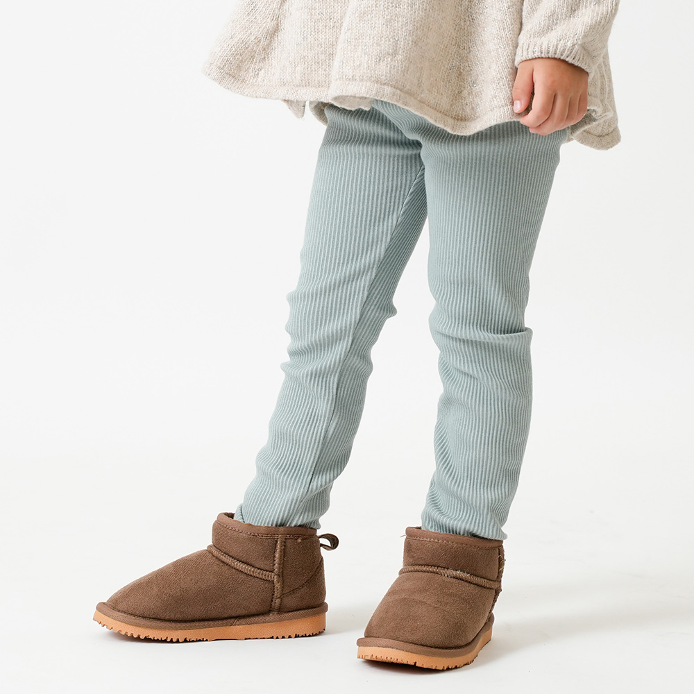 柔らかな綿素材(綿97%)。足首のリブがアクセントになり、柔らかな伸縮性で動きやすいのが特徴です。程よい厚みで、秋冬から春先まで使っていただけます。
