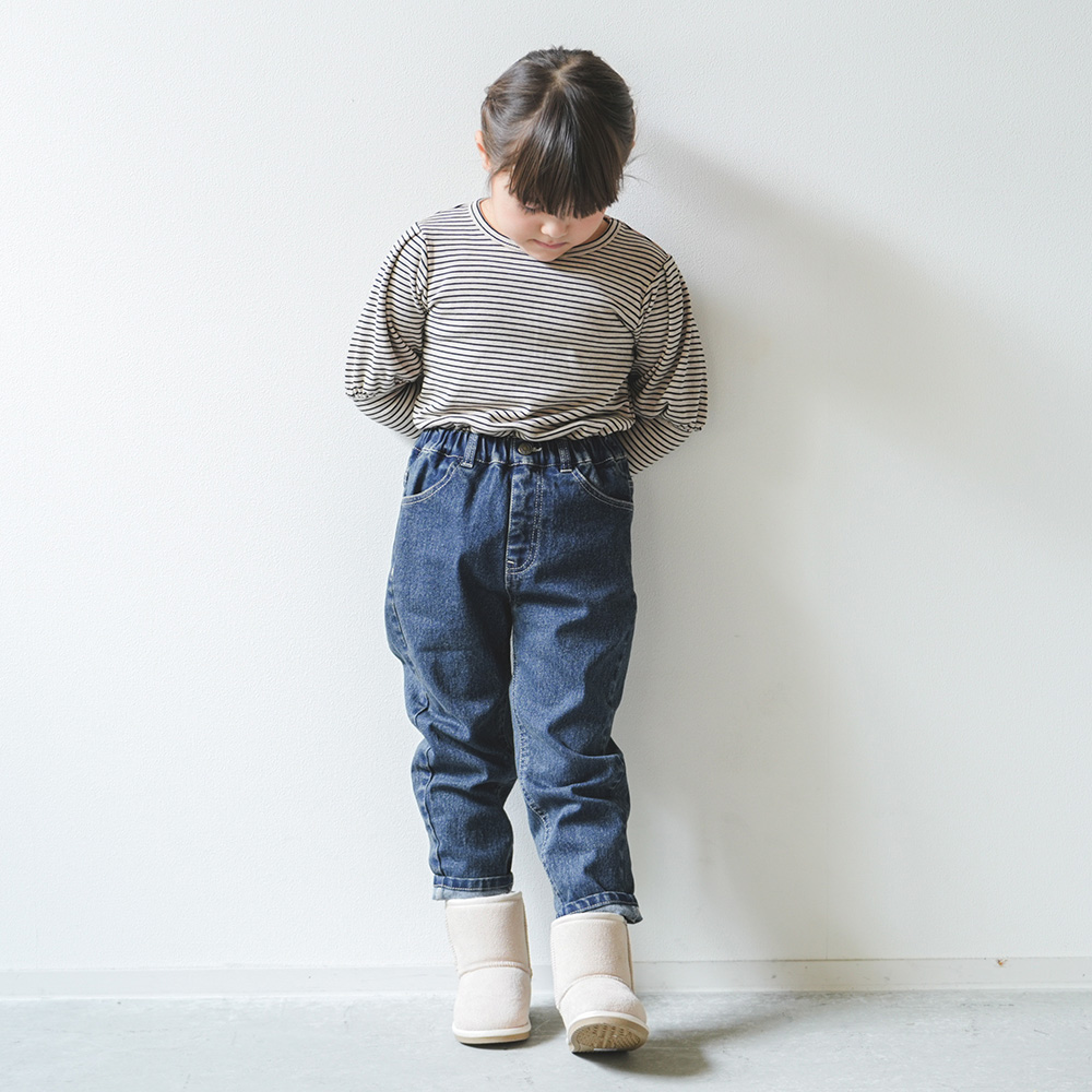 少し長めの丈感で、細身のパンツやレギンスをインして着こなしたり、ショート丈のボトムと合わせても◎