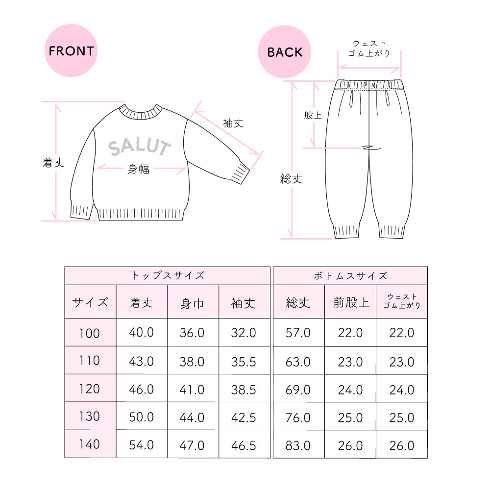 【140cm】 総丈83cm、前股上26cm、ウェストゴム上がり26cm