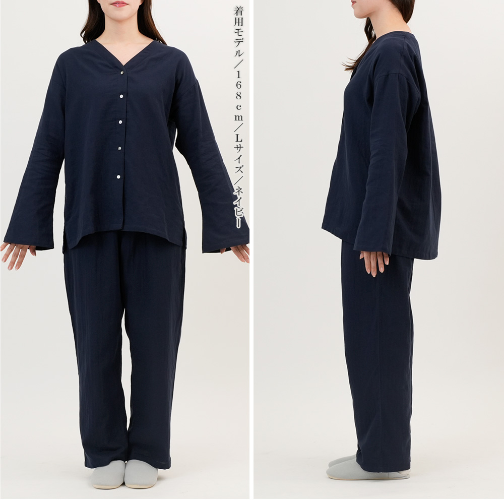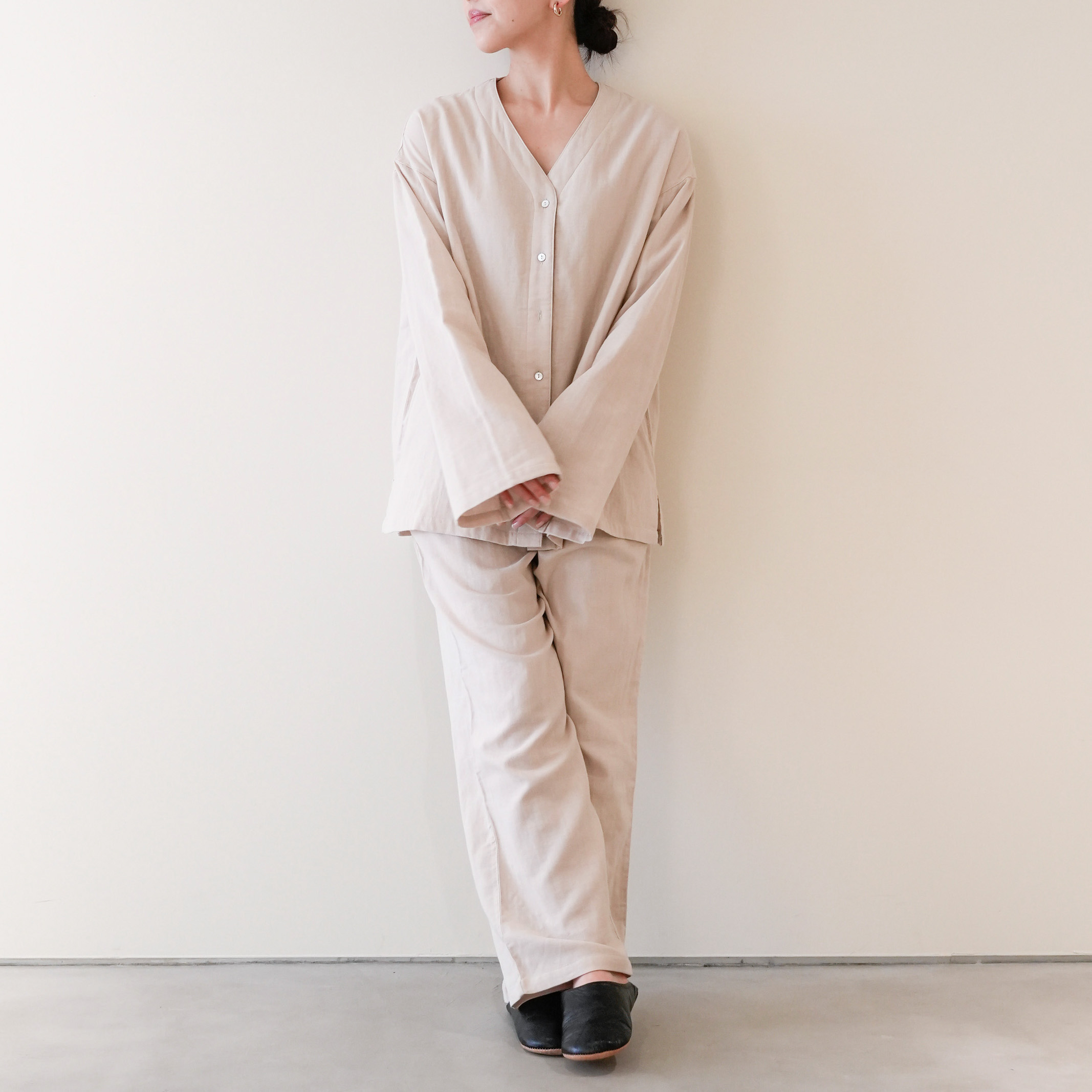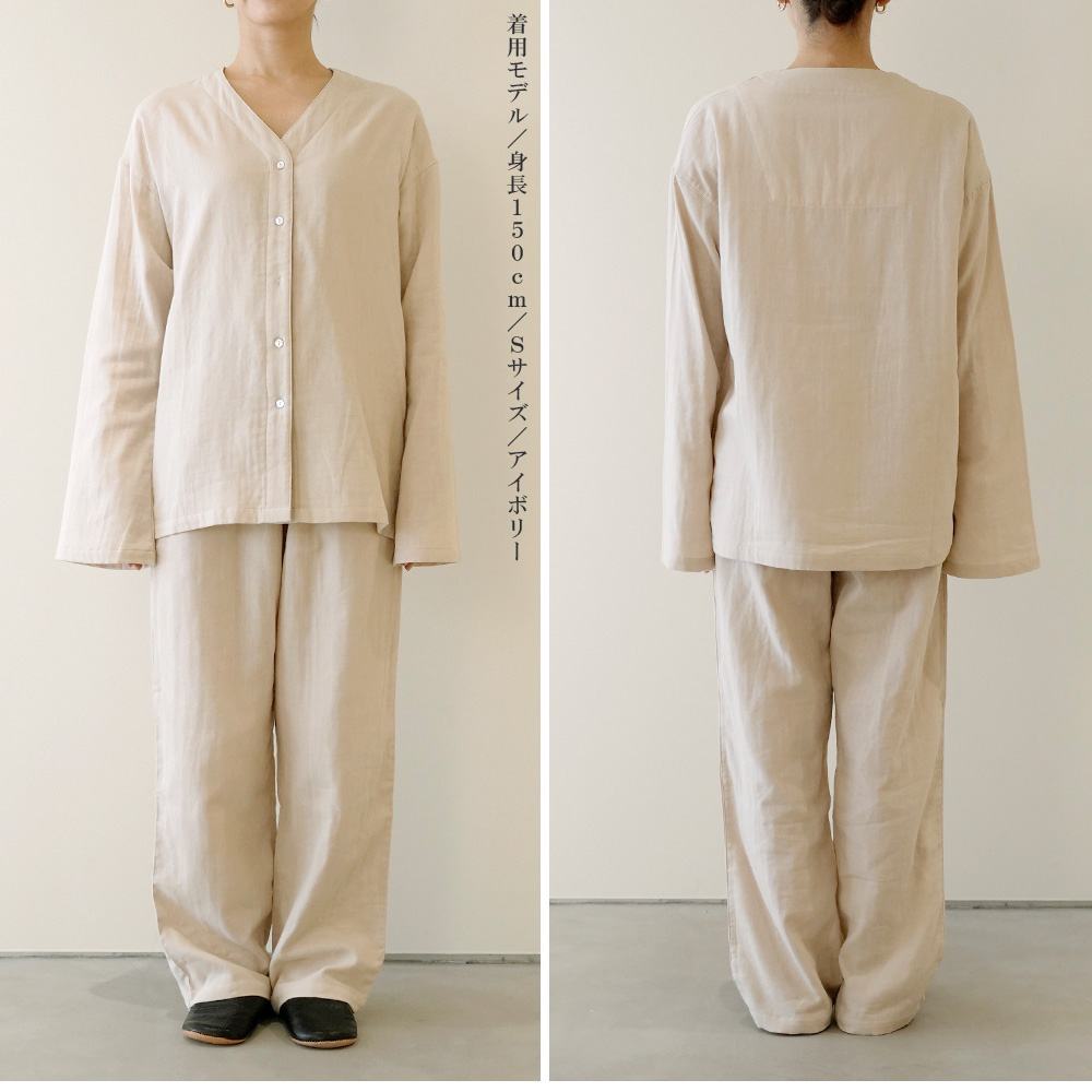 お部屋で着るパジャマでありながらも、美しく見えるシルエットに。